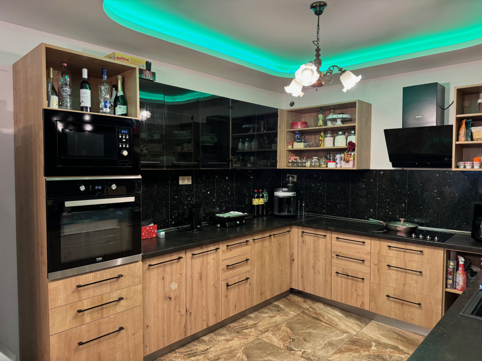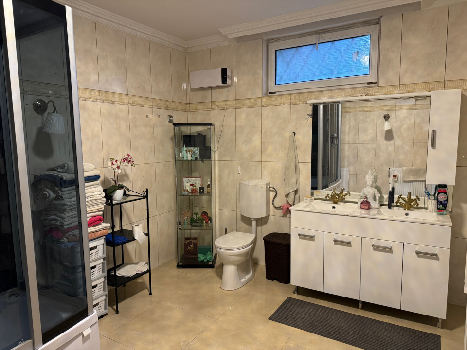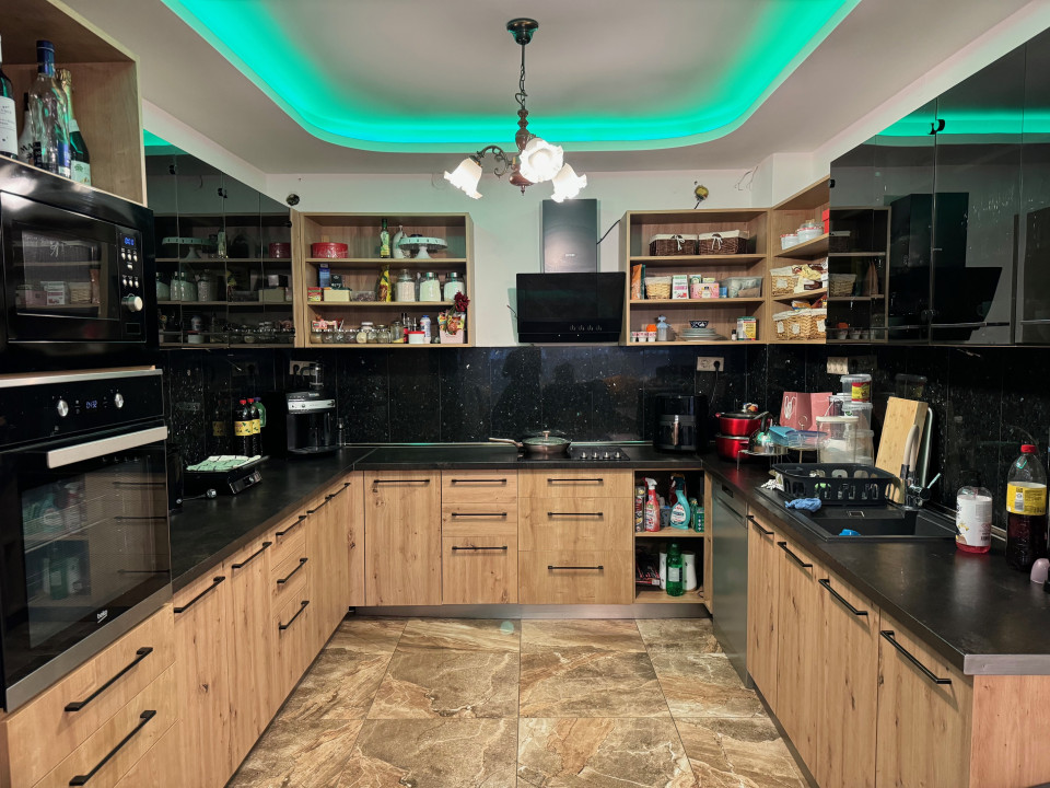 FÖLDSZINT: hatalmas amerikai konyhás nappali–étkező, teljesen külön lakrész: szoba saját fürdővel és gardróbbal – ideális vendégnek, dolgozószobának vagy idősebb családtagnak, közvetlen kijárat a 36 nm-es, napos teraszra, külön WC + kézmosó, praktikus mosókonyha.
