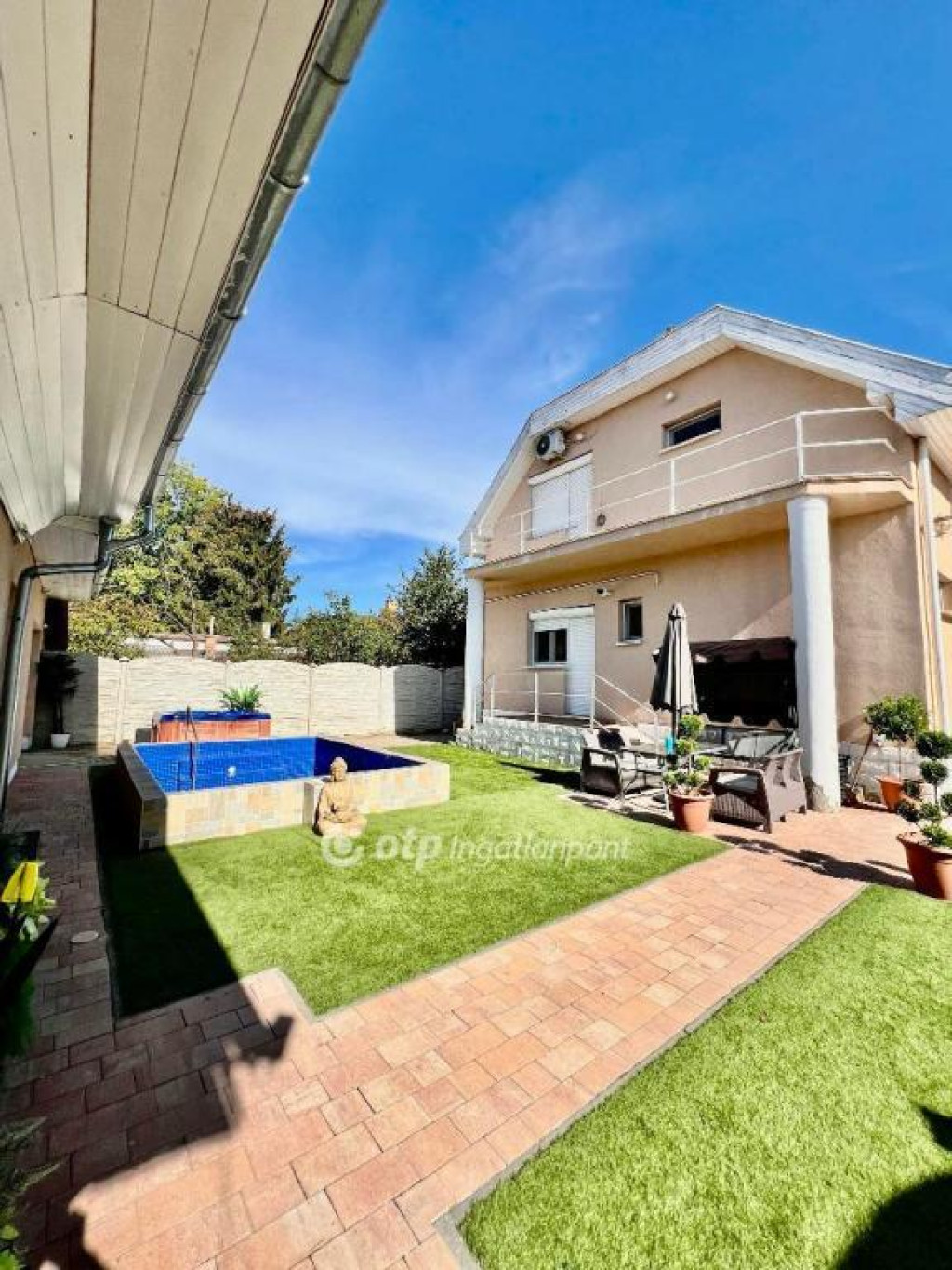 Az ingatlan további extrákkal is felszerelt, amelyek emelik az itt lakók kényelmét és életminőségét. Ezek közé tartozik a beépített medence, jakuzzi, infra szauna, valamint a kerti sütögető. A biztonságról elektromos kapu és rendőrségi riasztórendszer gondoskodik. Az előkert gazdag növényzettel és térkőburkolattal, a hátsókert pedig műfűvel lett ellátva, ami esztétikus és könnyen karbantartható.