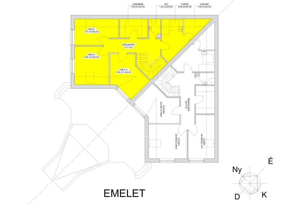 172 m2 (fsz. 67 m2, em. 48 m2 és szuterén 57 m2) hasznos alapterület, 208 m2 lakótér, 1 szoba + 3 félszoba, dupla komfort, 99 millió forint irányár egy ötletes kialakítású családi házért használat szerinti megosztás alapján 360 m2 saját kerttel.
