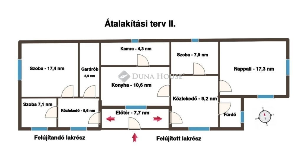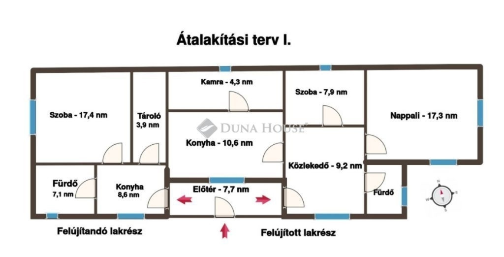 Két különálló házrész (59+37 nm): az egyik már felújítva, a másik alakítható
