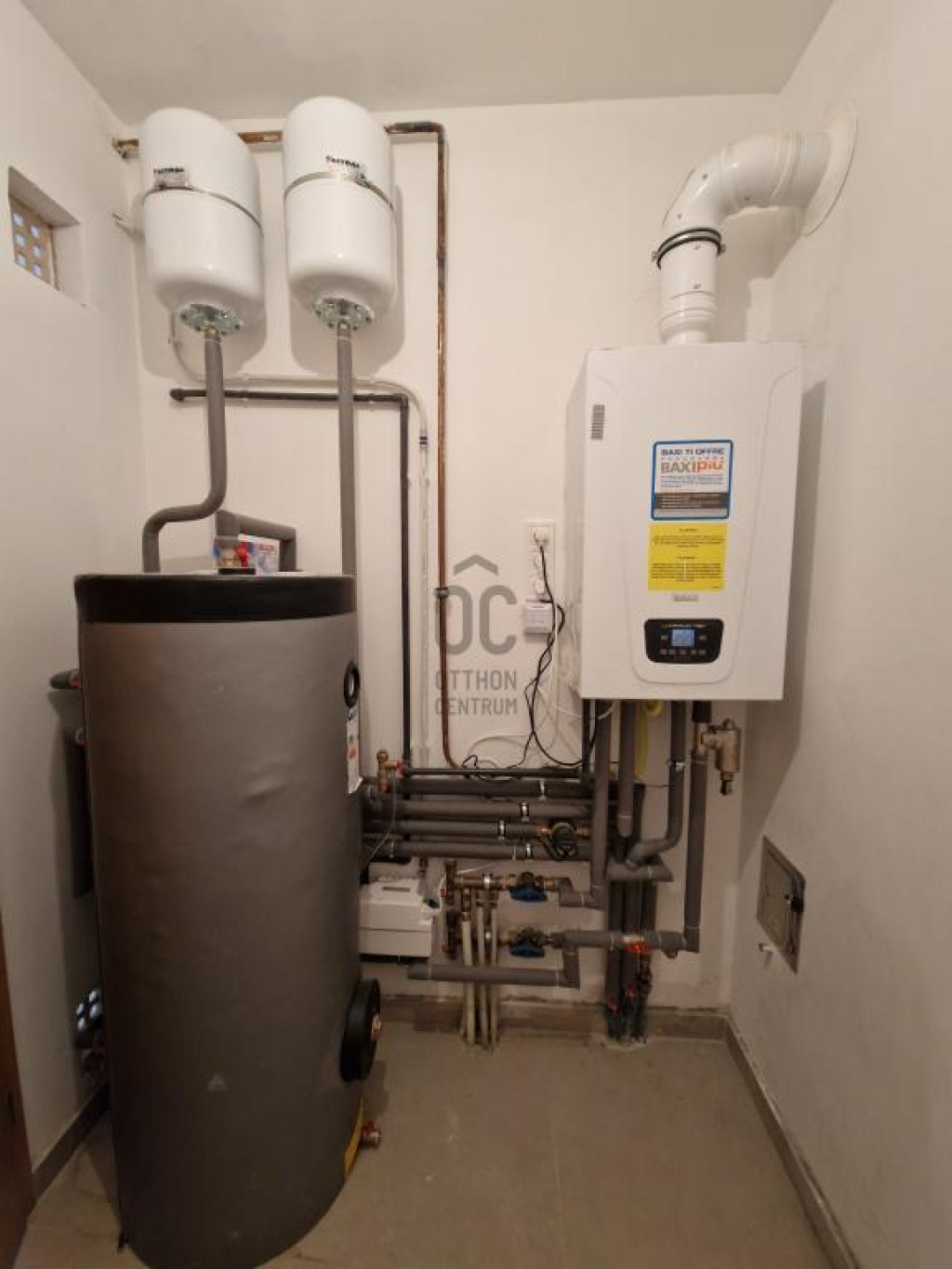 A fűtés és a meleg víz kombi cirkóról üzemel.
