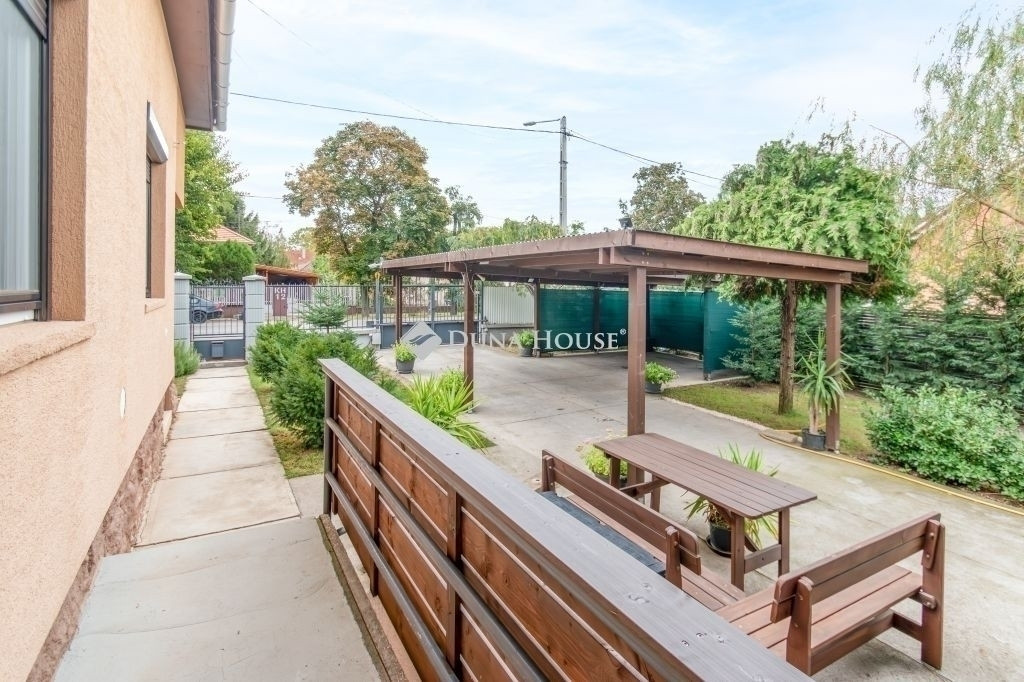 A házhoz tartozik egy 20 m²-es fedett terasz, amely ideális helyszín pihenésre vagy vendégfogadásra.