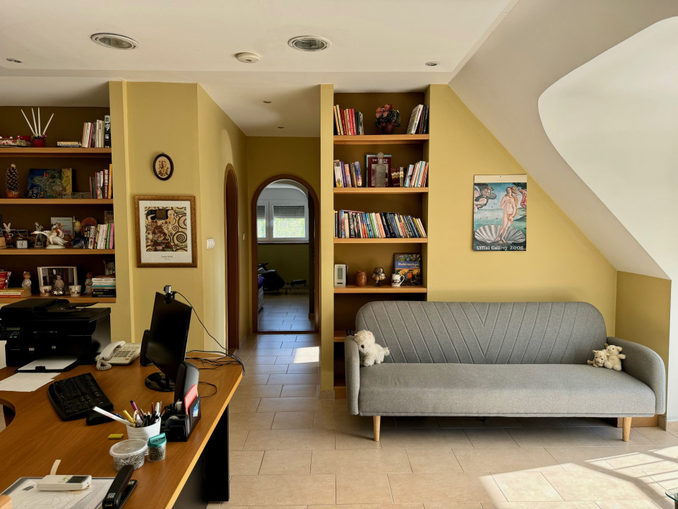 Emelet (2005-ben lakberendező által tervezve) kisebb nappali erkéllyel, 3 hálószoba beépített szekrényekkel, kádas fürdőszoba. A tetőszigetelés, és a nyílászárók 2023-ban cserélve, redőnnyel és szúnyoghálóval felszerelve.