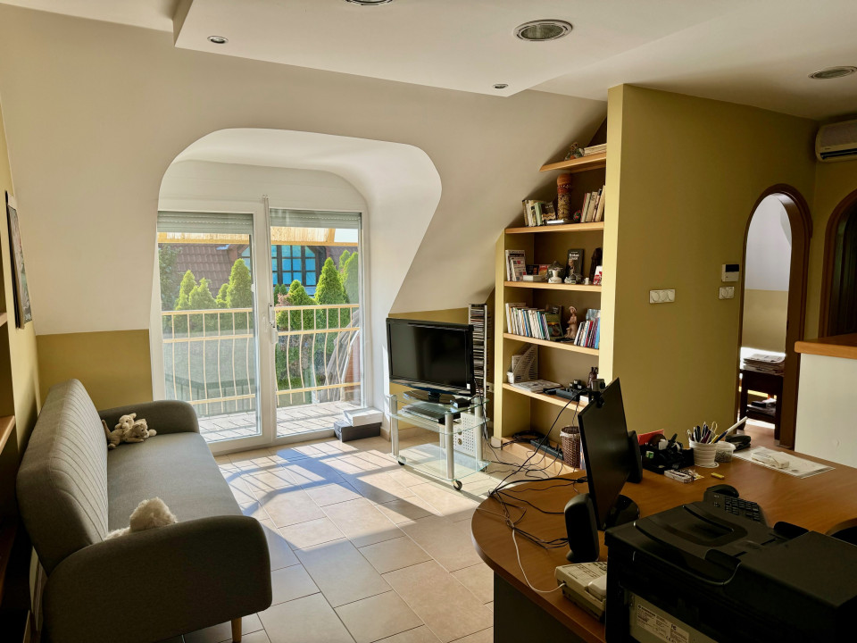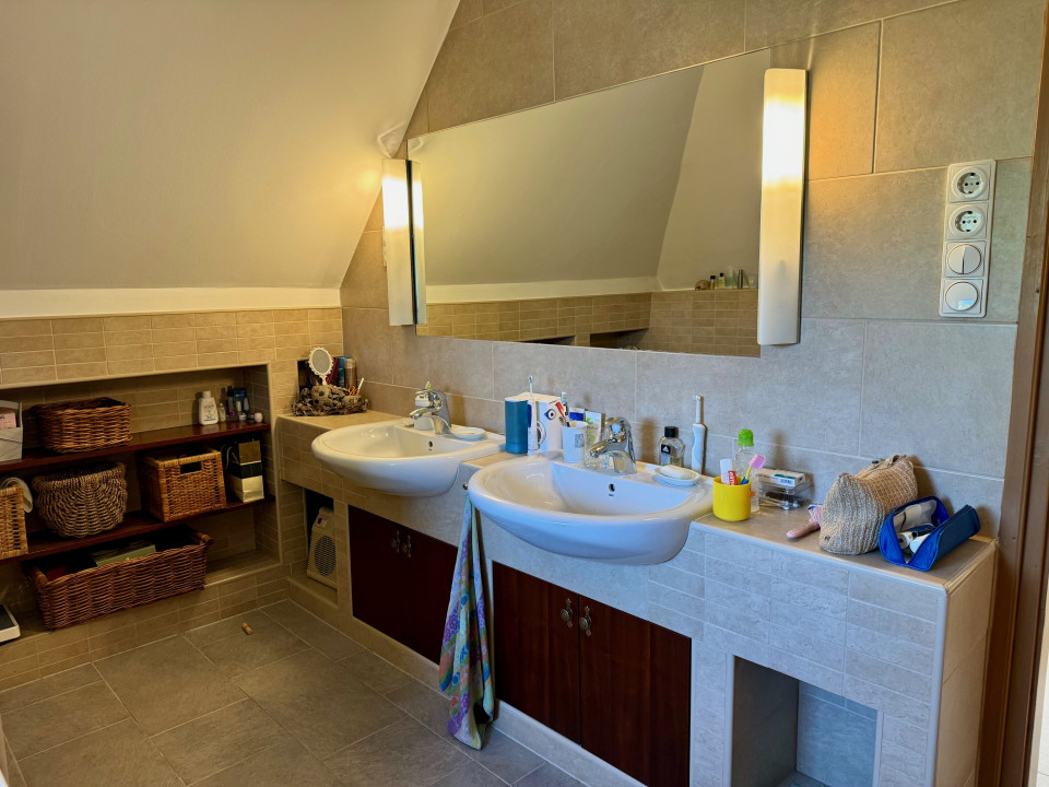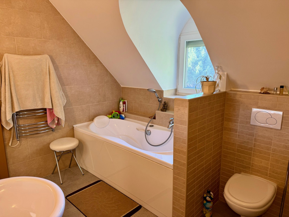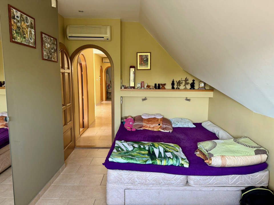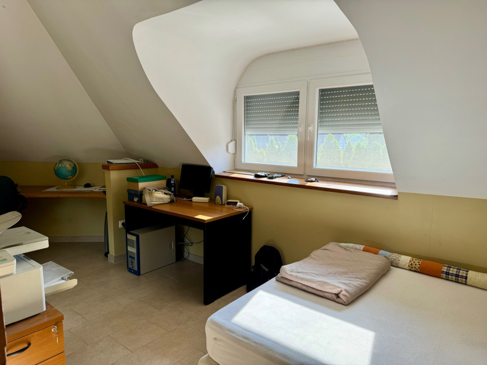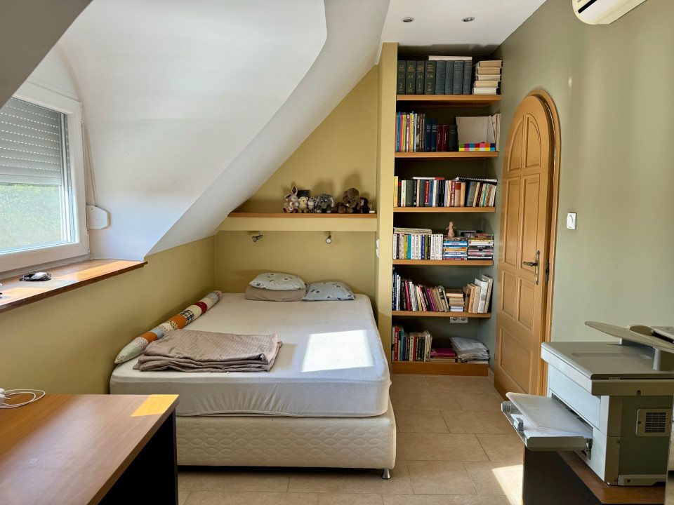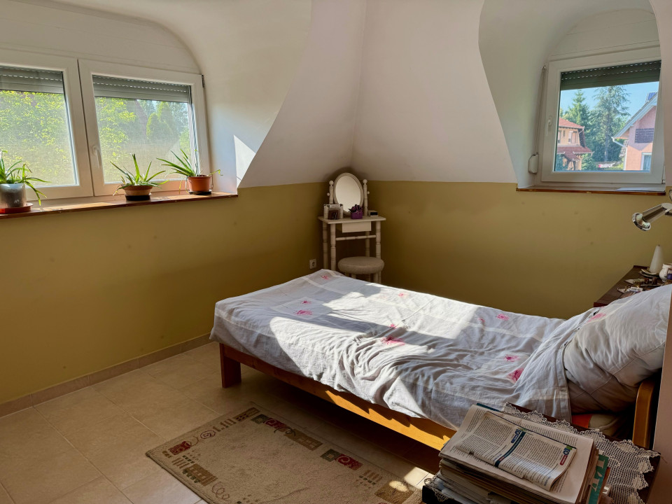 Emelet (2005-ben lakberendező által tervezve) kisebb nappali erkéllyel, 3 hálószoba beépített szekrényekkel, kádas fürdőszoba. A tetőszigetelés, és a nyílászárók 2023-ban cserélve, redőnnyel és szúnyoghálóval felszerelve.