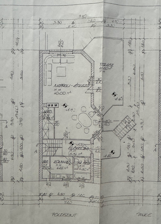 Földszint: 40 m²-es világos nappali–étkező A nappali mérete lehetővé teszi amerikai konyha kialakítását vagy dolgozó/vendégszoba leválasztását. Közvetlen kijárat a 30 m²-es fedett teraszra és kertbe, külön konyha + kamra, előszoba, zuhanyzós fürdőszoba.
