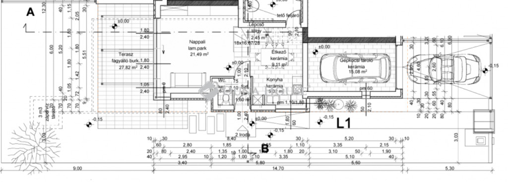 De a ház legnagyobb extrái közé tartozik,hogy a ház tetején került kialakításra egy 46 nm-es privát tetőterasz!!!!!!