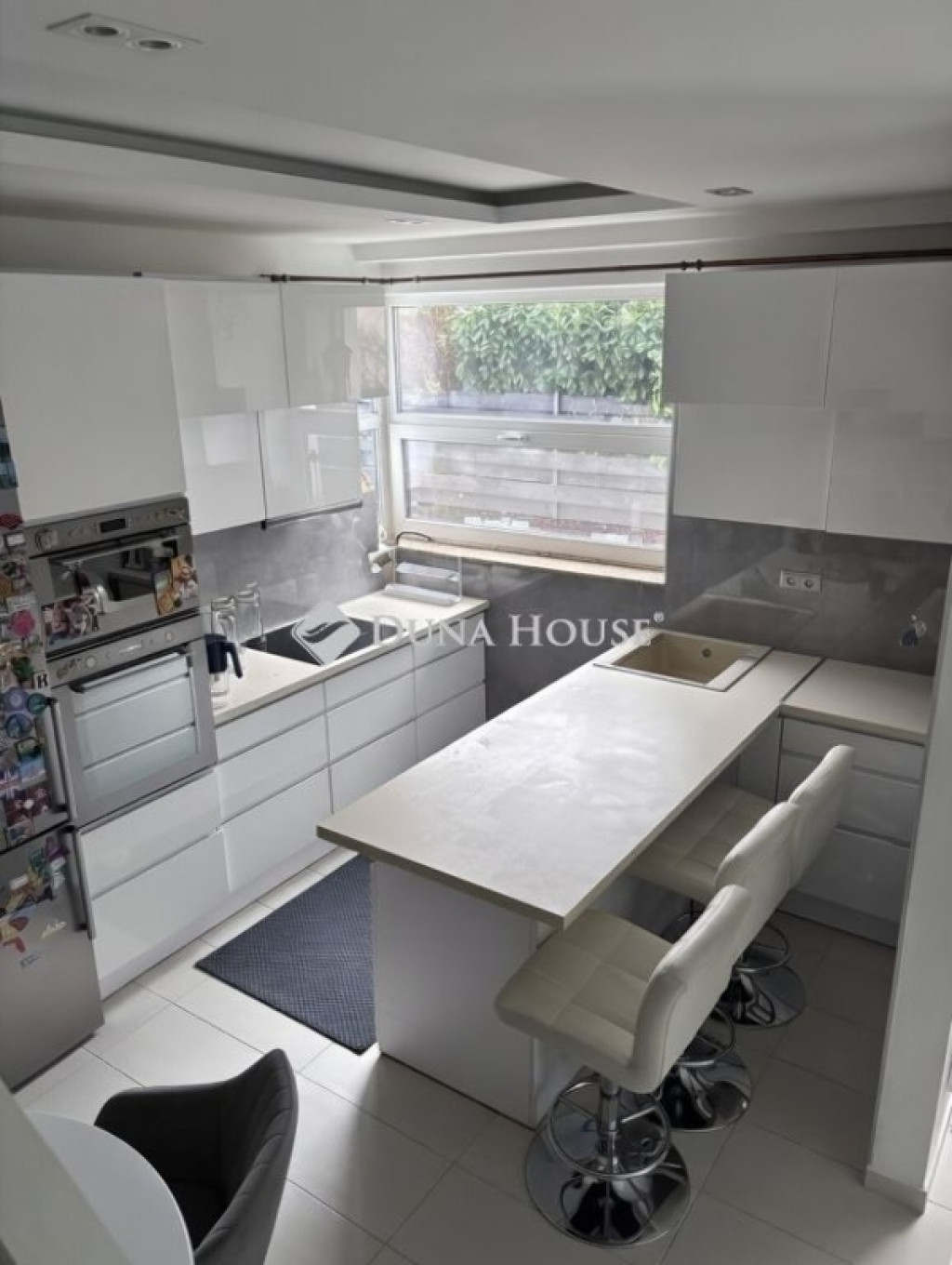 Az ingatlan 2015-ben készült,magas műszaki tartalommal és minőségi kivitelezéssel,amelynek a lakóterülete két szinten 94 nm,amelyhez tartozik egy 15 nm-es garázs és az udvaron,a viacoloros burkolattal ellátott részen két autó részére udvari beálló,illetve a ház udvari frontján található egy 27 nm-es terasz,amelyet a tulajdonosok egy zárható és fűthető télikertté varázsoltak.A ház alsó szintjén került kialakításra az előszobából belépve a kézmosós toalett és teljesen modern,egy légterű 35 nm-es nappali+amerikai konyha.A felső szinten három hálószoba,gardrób szoba és egy fürdőszoba található.