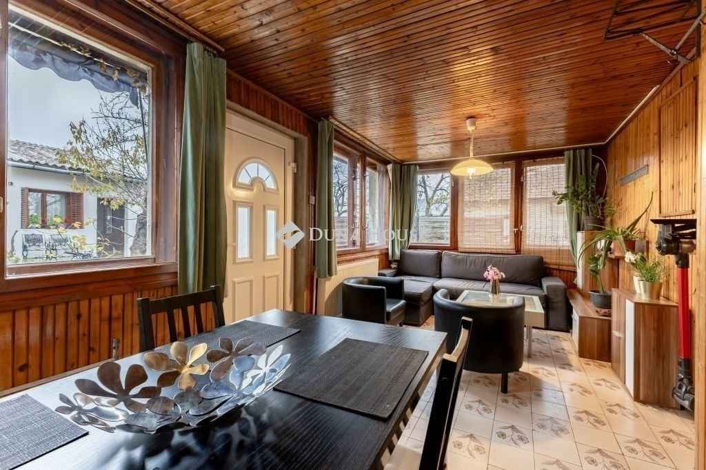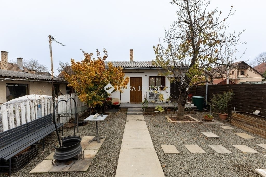 Az ingatlan csendes, átmenő forgalommentes, aszfaltozott utcában helyezkedik el, egyedi kialakításának köszönhetően egyszerre kínál egy családi otthont és külön álló tereket. A fő épület szigetelt és átlagos állapotú, ami egy kis törődéssel hibátlan otthon lehet. A hátsó udvarra nyíló amerikai konyhás nappali biztosítja a csendet és a nyugalmat a három hálószoba pedig az intim szférát a család minden tagja számára. A ház nappalija, konyhája és vizes helyiségei kerámiával burkoltak, szobái parkettával. A fő épület fűtését cirkófűtés biztosítja, hő leadói lemez radiátorok.