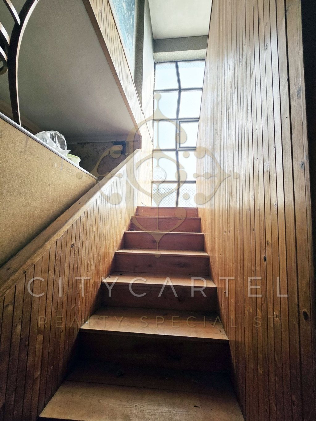 A lépcsőház a felső szintre vezet, lefelé a pince felé közlekedhetünk, ahol a kazán és a garázs is található.