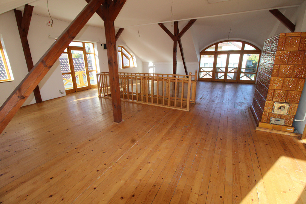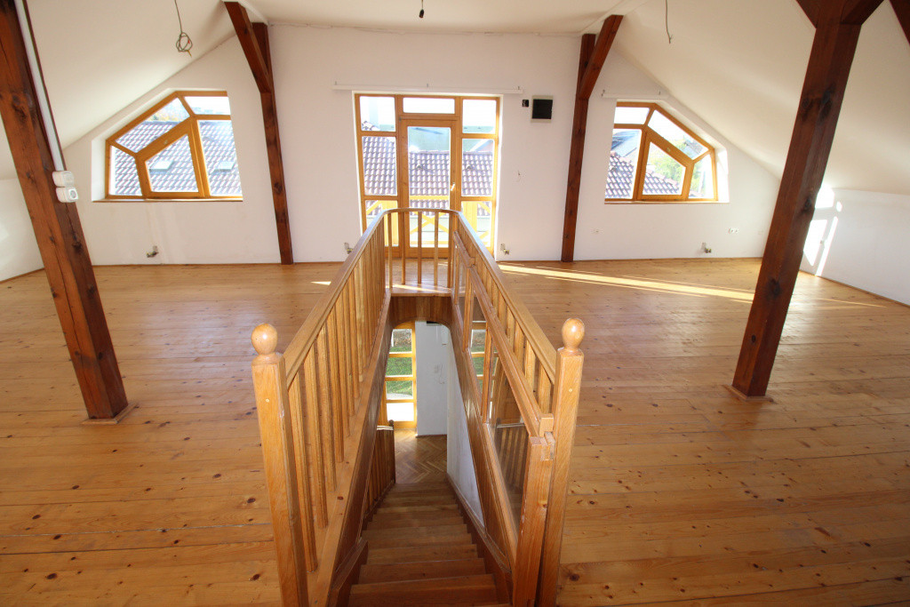 Az emelet a ház igazi különlegessége .Nem volt lakva, így az új tulajdonos saját ízlése és igényei szerint alakíthatja ki álmai emeletét. A két nagy, egybefüggő tér kiválóan variálható: