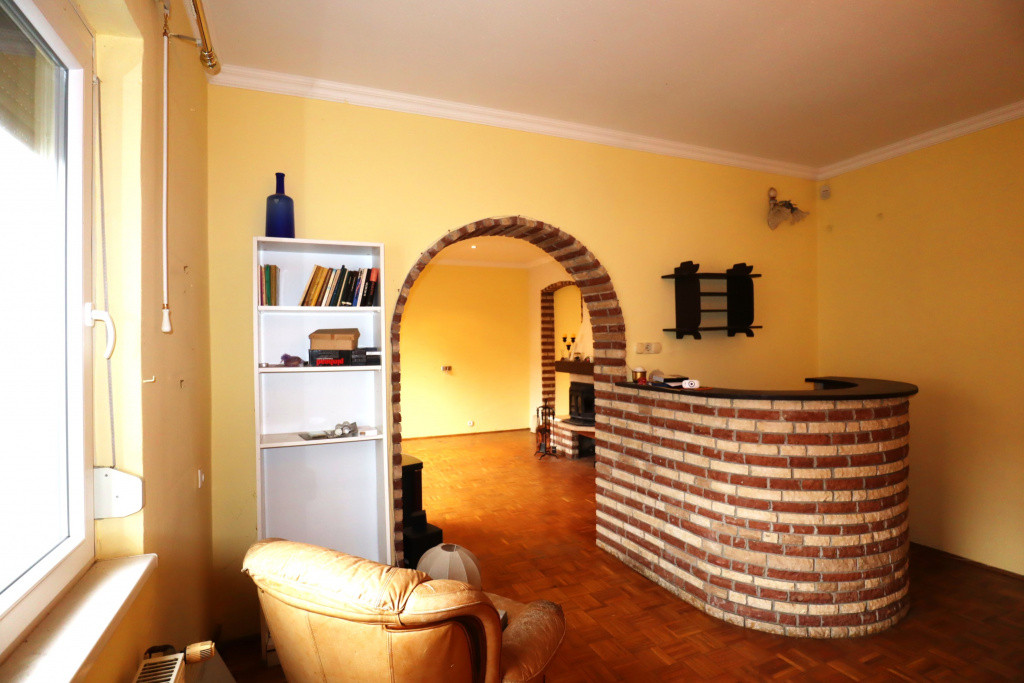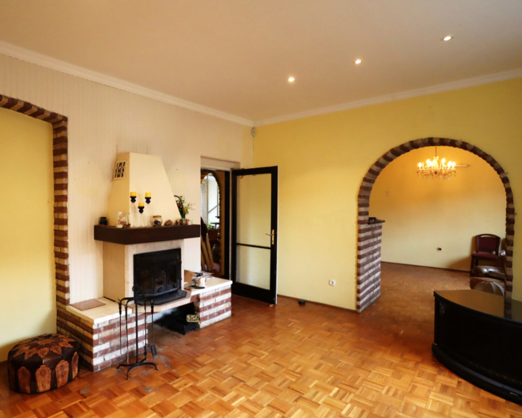 Kiemelt figyelmet érdemel a hatalmas (közel 40 nm-es!) nappali, melyben az épített fatüzelésű kandalló, és a szintén épített bársarok remekül szolgálja az akár nagyobb létszámú családi összejövetelek hangulatát. A belsőépítészeti megoldásoknak és a közel 3 méteres belmagasságnak köszönhetően az újabb építésű házrész lakóhelyiségei nagyon kellemes, különleges hangulatot árasztanak.