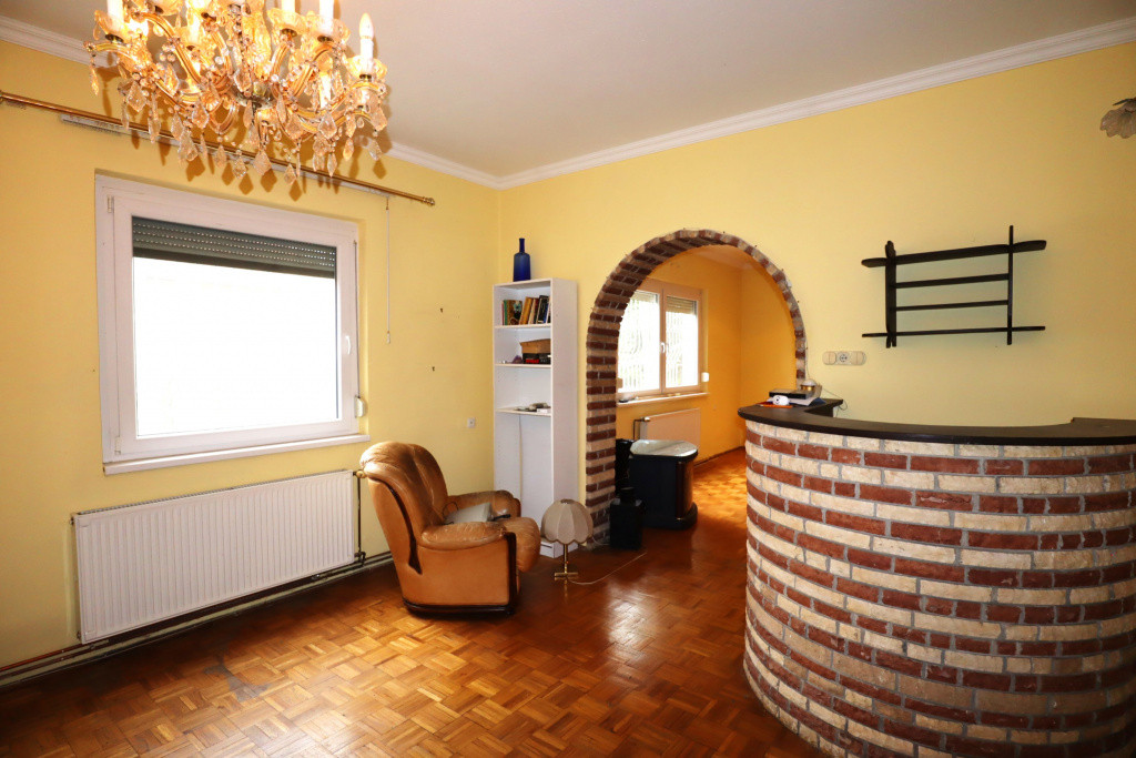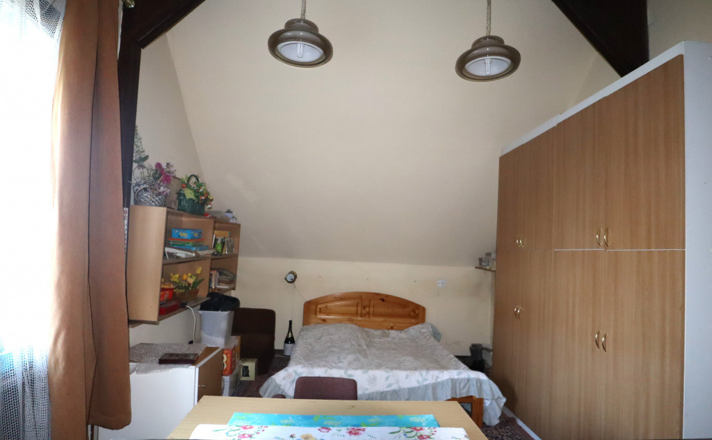 A 600 nm-es összközműves telken elhelyezkedő, 144 nm HASZNOS alapterületű, beton alapzatú, tégla falazatú épület statikailag és szerkezetileg is kifogástalan állapotban van. A jelenlegi alaprajzi elrendezése 1980-ban jött létre, amikor a már meglévő régebbi épületet kibővítették. Az új tetőtér magában foglal egy kb. 25 nm-es tetőtéri szobát, ami mellett tágas teret kínál a további beépítési törekvéseknek.