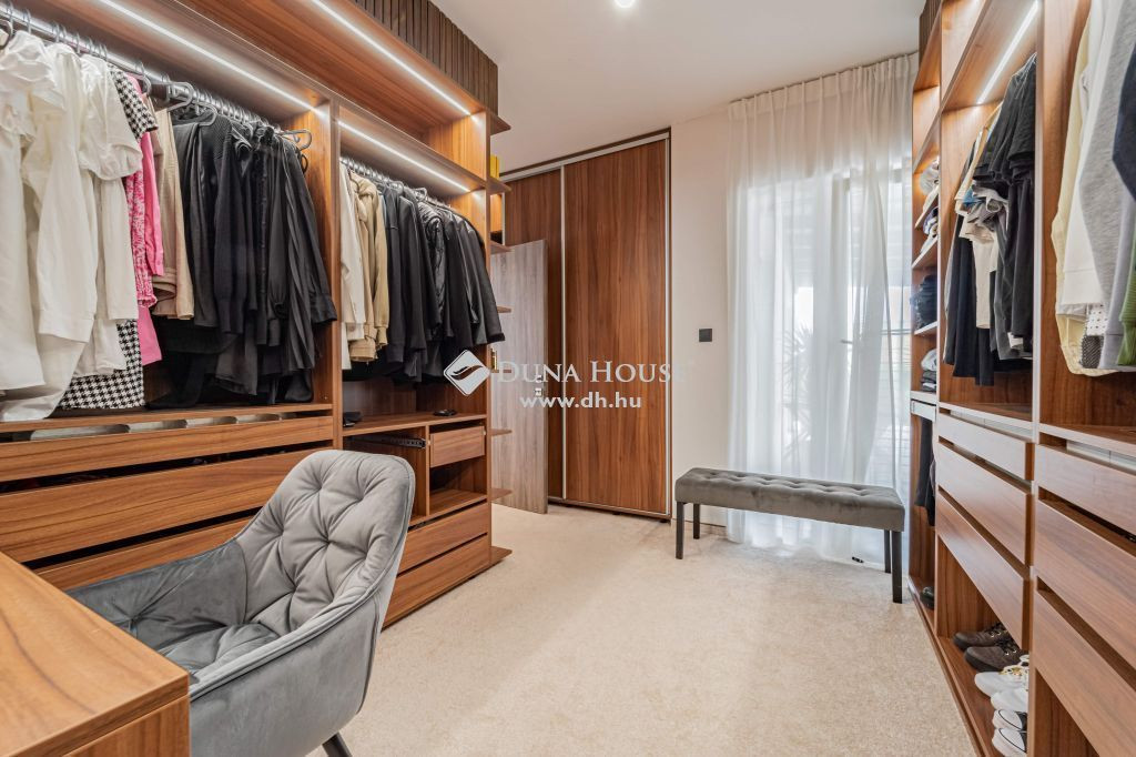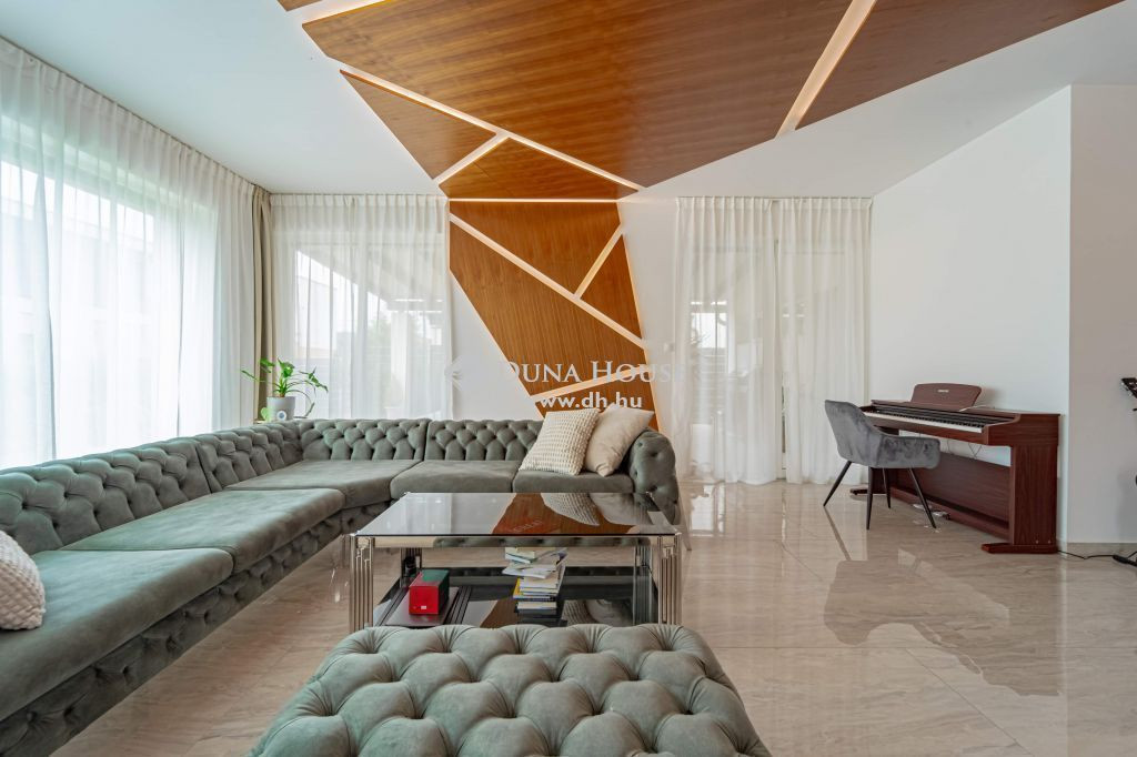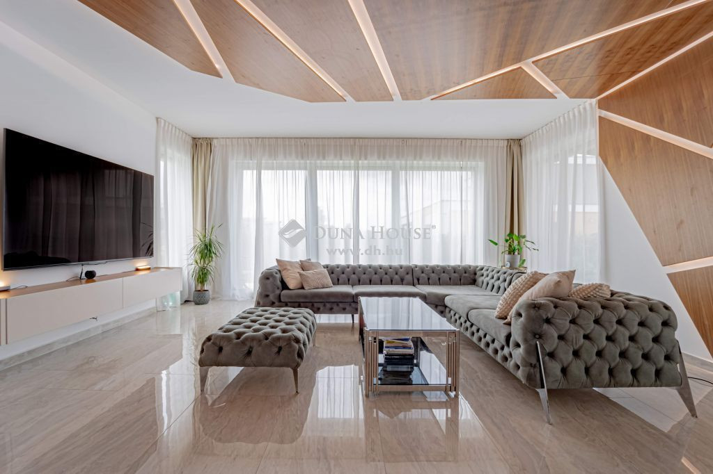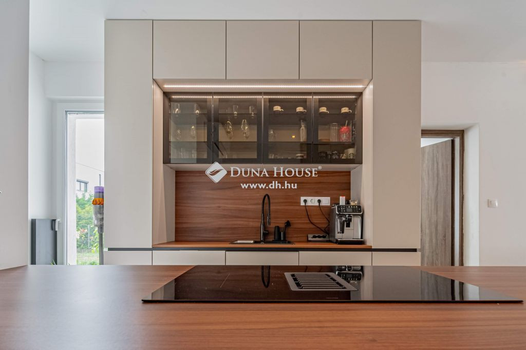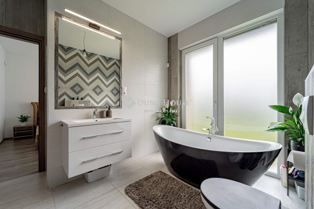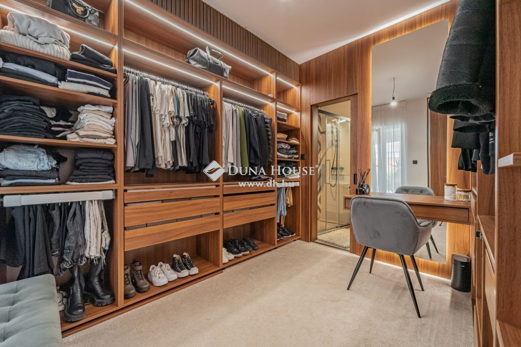 Közkedvelt Almáskertben részletekbe menően nívós ÖNÁLLÓ családi otthonEladásra kínálok a 18.kerület családias, új, modern részén egy 120 négyzetméteres hasznos élettérrel rendelkező csodás házat, mely 662 négyzetméteres telken fekszik. A HÁZ TELJESEN KÖRBEJÁRHATÓ, egy felszíni fedett autóbeálló teteje ér össze a szomszéddal.Nappali+3 hálószoba található a házban, két fürdőszobával és külön illemhelyiséggel. Az otthon minden szegletét belsőépítész által terveztette a tulajdonos. Az összes tér és bútor összhangban van kialakítva egymással, a ház bármely területén járunk, mindenhol visszaköszön valami, ami az alapos tervezés eredménye. Minden helyiségben egyedileg ide gyártott beépített bútorokat találunk melyek az egész ház stílusával harmonizálnak. A gondos tervezés eredményeképp itt nem lesz olyan tárgy aminek nem lehet megtalálni a maga helyét.Műszaki adatokat tekintve a ház 38-as téglából 15 cm szigeteléssel épült, a tetőtérben további 20 cm kőzetgyapottal. Fűtése gázcirkóval megoldott mely padlófűtéssel adja le a hőt. Egy nagy teljesítményű Fisher klíma is beépítésre került, hogy a nyári melegben gondoskodjon a hűtésről. Minden ablakon elektromos alumínium zsalúziák találhatóak, melyek smarthome rendszerrel működtethetőek. Riasztóval felszerelt a ház. Több helyiségben is automatikusan kapcsol a világítás mozgásérzékelésre, továbbá a bejárati kapu, garázs, zsalúziák és a ház világítása is applikációról és hangvezérléssel is működtethető.A konyhában található gépek a vételár részét képzik: két szárnyú Samsung hűtő, Bosch mosogatógép, Whirpoll beépített sütő, mikrohullámú sütő.A fürdőszobákban található bútorok, illetve a szabadon álló kád is Wellis márkájú, szintén az ingatlanhoz tartozik.Igény szerint a ház teljes bútorzattal eladó.Az ingatlanhoz egy önálló garázs és további 1 felszíni fedett autóbeálló tartozik. A kert gondozását öntöző és csepegtető rendszer segíti elő, mely fúrt kútról működik.