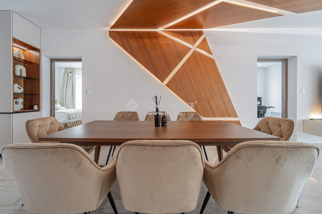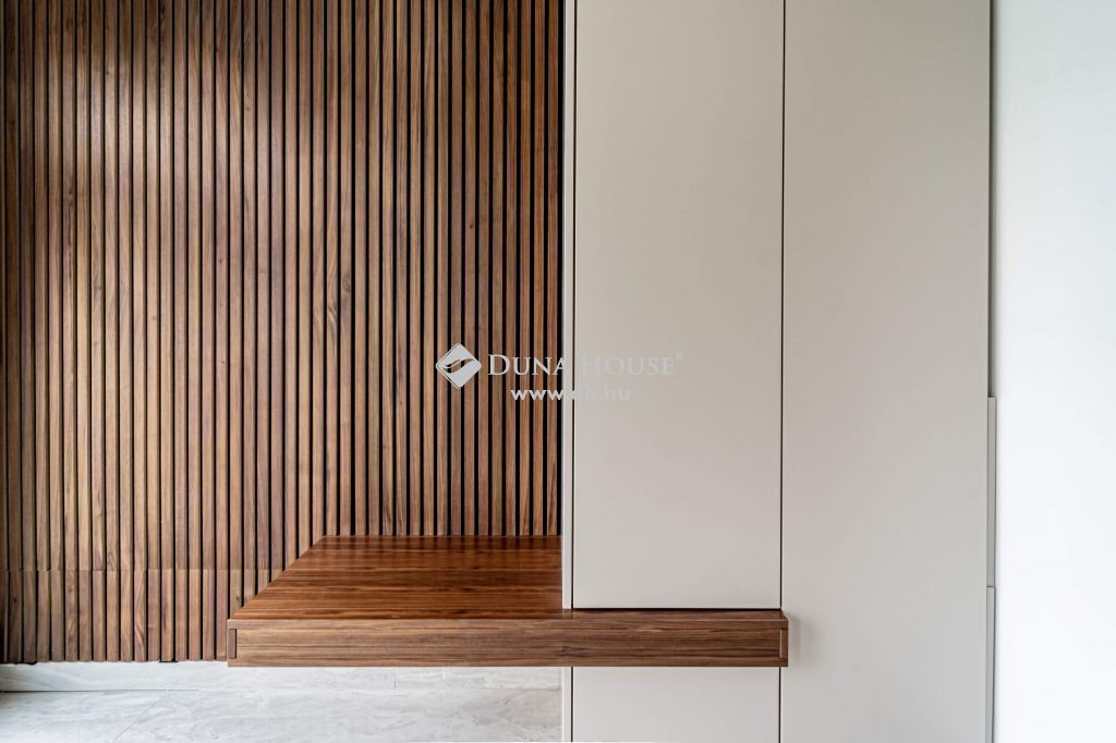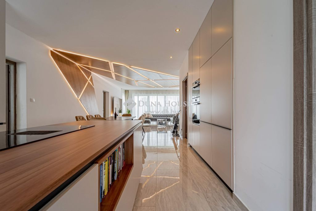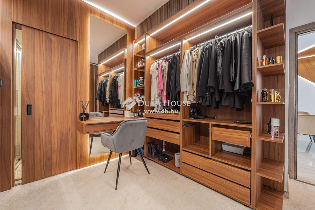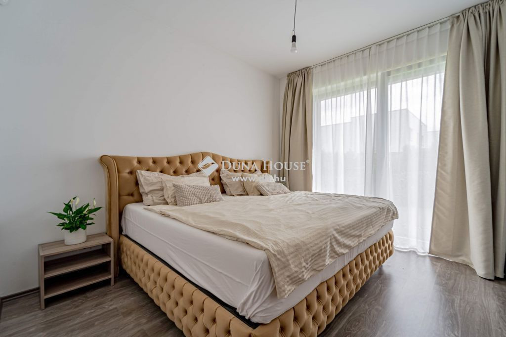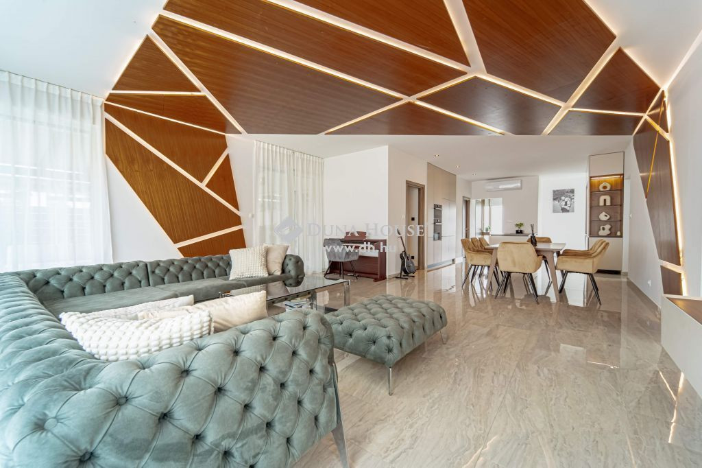 Közkedvelt Almáskertben részletekbe menően nívós ÖNÁLLÓ családi otthonEladásra kínálok a 18.kerület családias, új, modern részén egy 120 négyzetméteres hasznos élettérrel rendelkező csodás házat, mely 662 négyzetméteres telken fekszik. A HÁZ TELJESEN KÖRBEJÁRHATÓ, egy felszíni fedett autóbeálló teteje ér össze a szomszéddal.Nappali+3 hálószoba található a házban, két fürdőszobával és külön illemhelyiséggel. Az otthon minden szegletét belsőépítész által terveztette a tulajdonos. Az összes tér és bútor összhangban van kialakítva egymással, a ház bármely területén járunk, mindenhol visszaköszön valami, ami az alapos tervezés eredménye. Minden helyiségben egyedileg ide gyártott beépített bútorokat találunk melyek az egész ház stílusával harmonizálnak. A gondos tervezés eredményeképp itt nem lesz olyan tárgy aminek nem lehet megtalálni a maga helyét.Műszaki adatokat tekintve a ház 38-as téglából 15 cm szigeteléssel épült, a tetőtérben további 20 cm kőzetgyapottal. Fűtése gázcirkóval megoldott mely padlófűtéssel adja le a hőt. Egy nagy teljesítményű Fisher klíma is beépítésre került, hogy a nyári melegben gondoskodjon a hűtésről. Minden ablakon elektromos alumínium zsalúziák találhatóak, melyek smarthome rendszerrel működtethetőek. Riasztóval felszerelt a ház. Több helyiségben is automatikusan kapcsol a világítás mozgásérzékelésre, továbbá a bejárati kapu, garázs, zsalúziák és a ház világítása is applikációról és hangvezérléssel is működtethető.A konyhában található gépek a vételár részét képzik: két szárnyú Samsung hűtő, Bosch mosogatógép, Whirpoll beépített sütő, mikrohullámú sütő.A fürdőszobákban található bútorok, illetve a szabadon álló kád is Wellis márkájú, szintén az ingatlanhoz tartozik.Igény szerint a ház teljes bútorzattal eladó.Az ingatlanhoz egy önálló garázs és további 1 felszíni fedett autóbeálló tartozik. A kert gondozását öntöző és csepegtető rendszer segíti elő, mely fúrt kútról működik.
