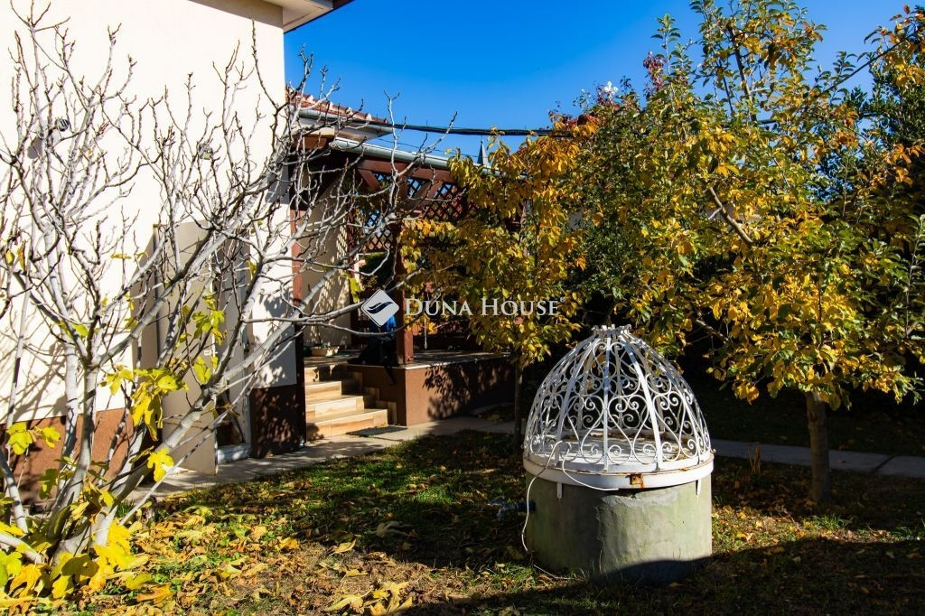 A kertben pedig egy hangulatos, 28 m²-es pavilon kemencével várja a baráti összejöveteleket és családi grillpartikat!