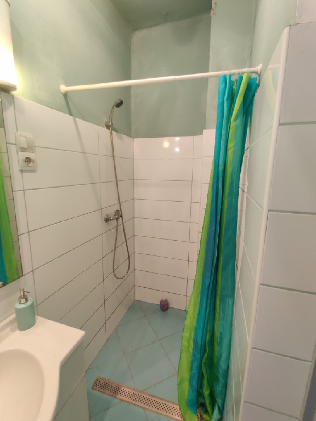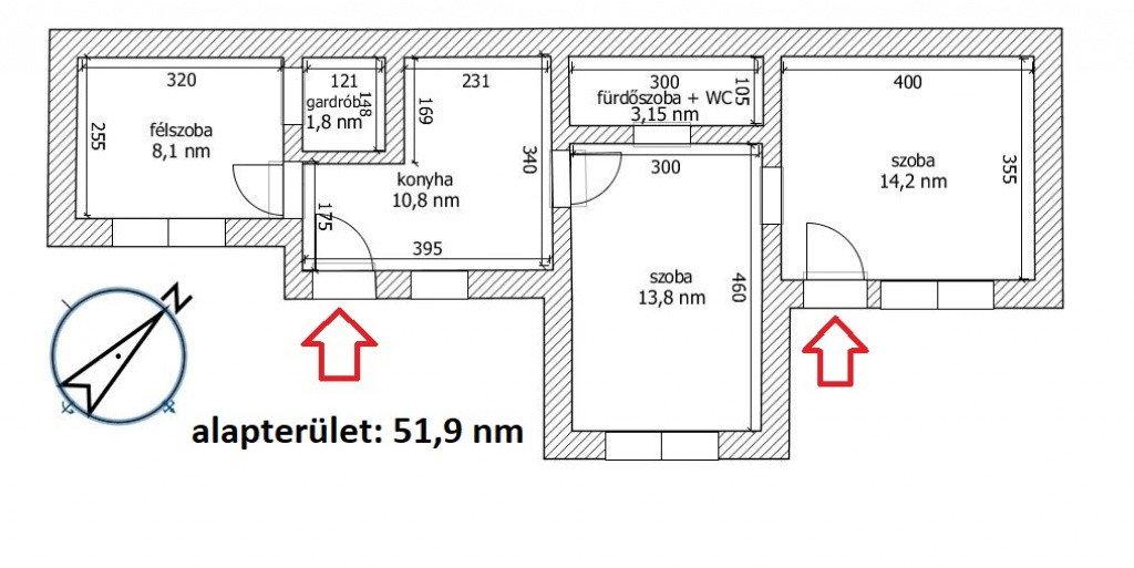 A tehermentes, akár azonnal birtokba vehető ingatlan a hátsó lakásban található, ami 2+1 félszobás, és 52 nm-es. Az ingatlannak két bejárata is van. A konyhája ablakos, a fürdőszobában zuhanyzó lett kialakítva, itt található a toalett is. Minden fogyasztás önállóan mérhető. A fűtésről gázcirkó gondoskodik, a használati melegvizet villanybojler biztosítja.