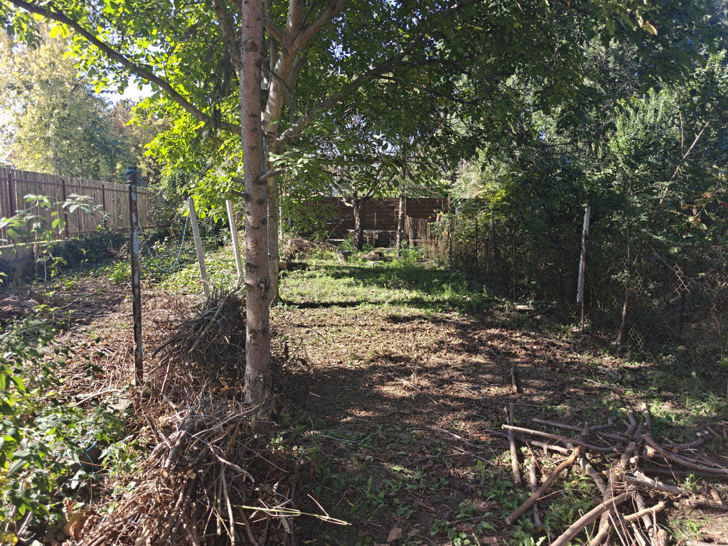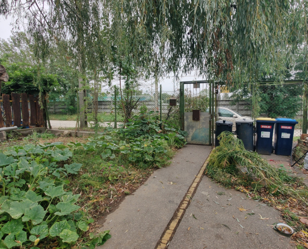 Az osztatlan közös tulajdonú, összközműves telek 568 nm-es, ennek használatáról a tulajdonosok között ügyvéd által ellenjegyzett használati megállapodás készült. A közös használatú udvarrészek mellett az épületek mögött található hátsókert hosszanti irányban van megfelezve, itt jól láthatóan kerítéssel is el van választva egymástól a tulajdonosok kizárólagos használatú kertrésze.
