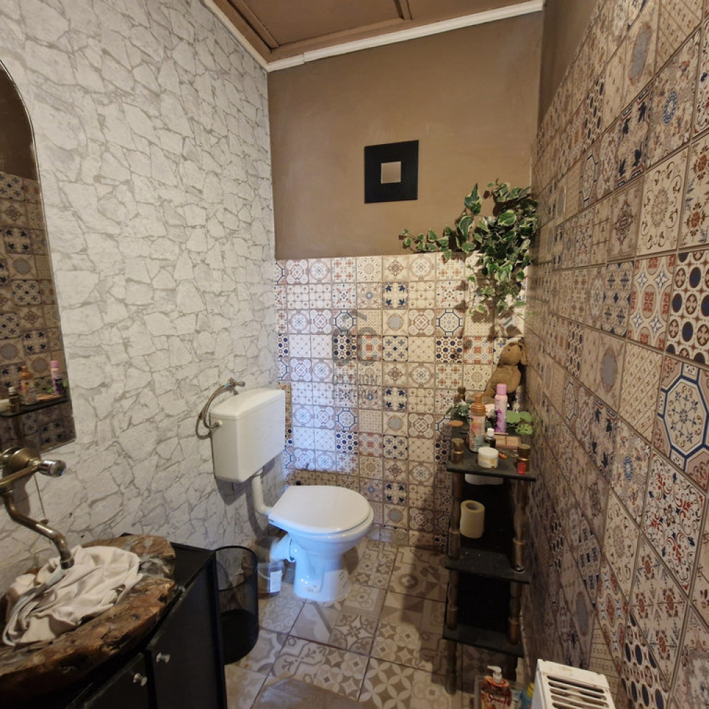 Az emeleten fürdőszoba és WC található, míg a földszinten a fürdő és a WC külön helyiségben kapott helyet.