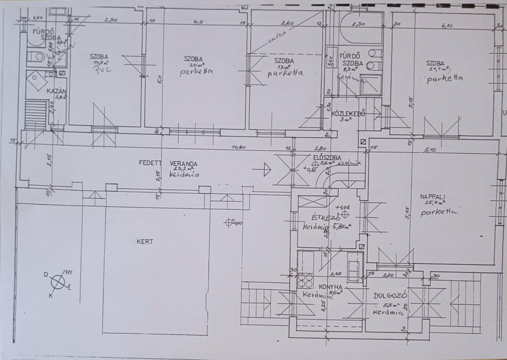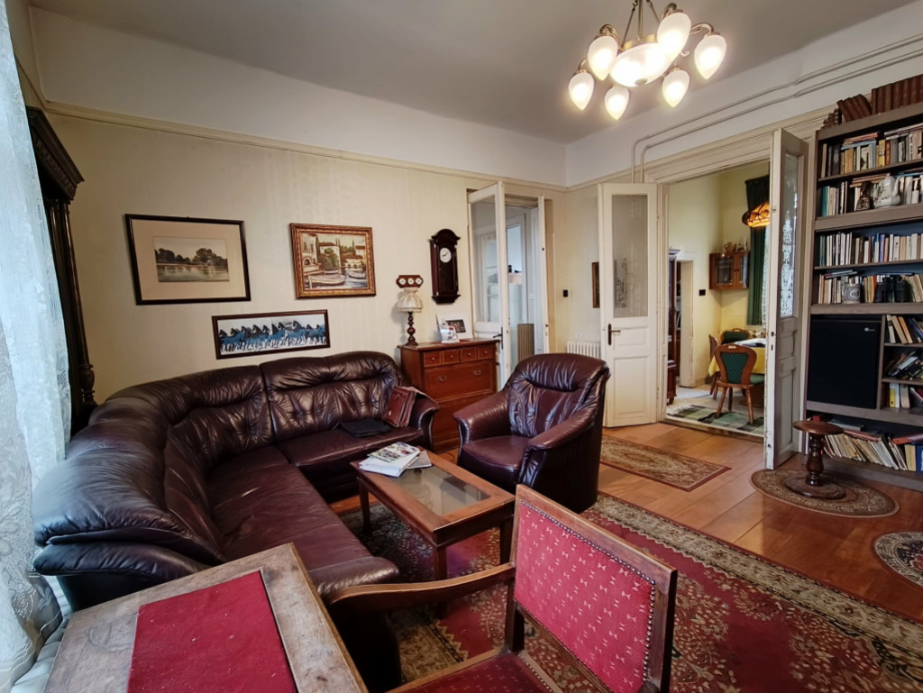 A XX. kerület rendezett, nyugodt kertvárosi utcájában eladó egy 137 m²-es, háromgenerációs kialakításra is alkalmas családi ház egy 834 m²-es, különleges hangulatú telken.