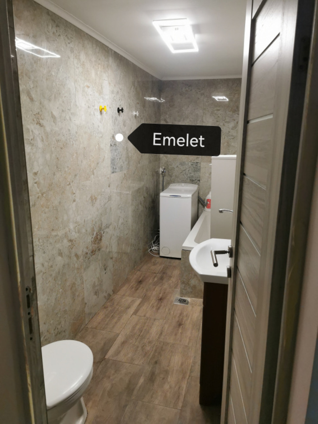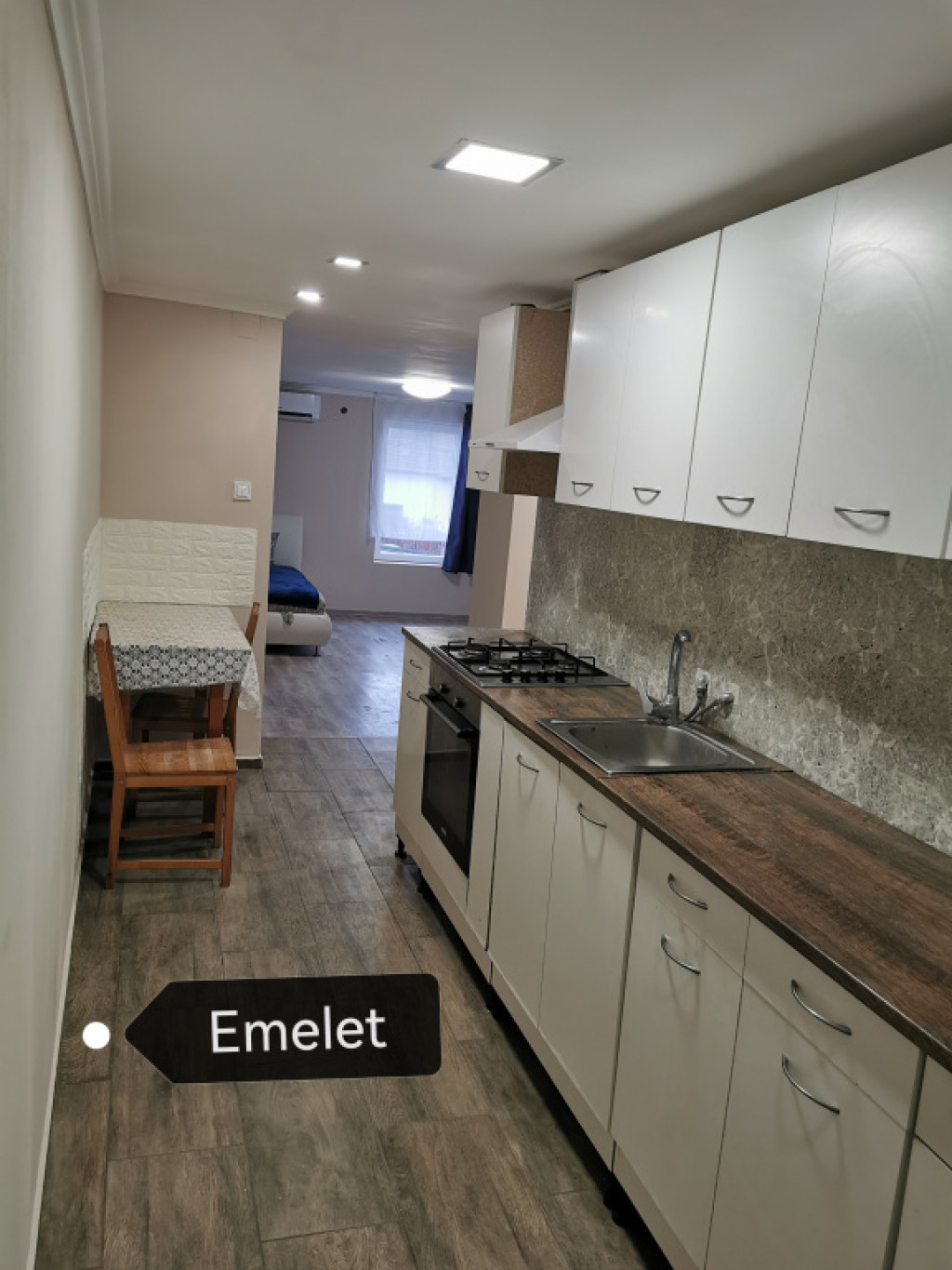 -Emelet (45 m²): Külön bejáraton keresztül megközelíthető lakrész, amelyben egy szoba, konyha, fürdőszoba és egy előtér kapott helyet. Ideális fiataloknak, nagyszülőknek vagy bérbeadásra is.