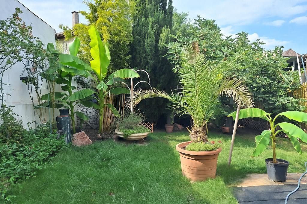 hangulatos, füvesített zöld kert, melyre nem látnak be az utcáról