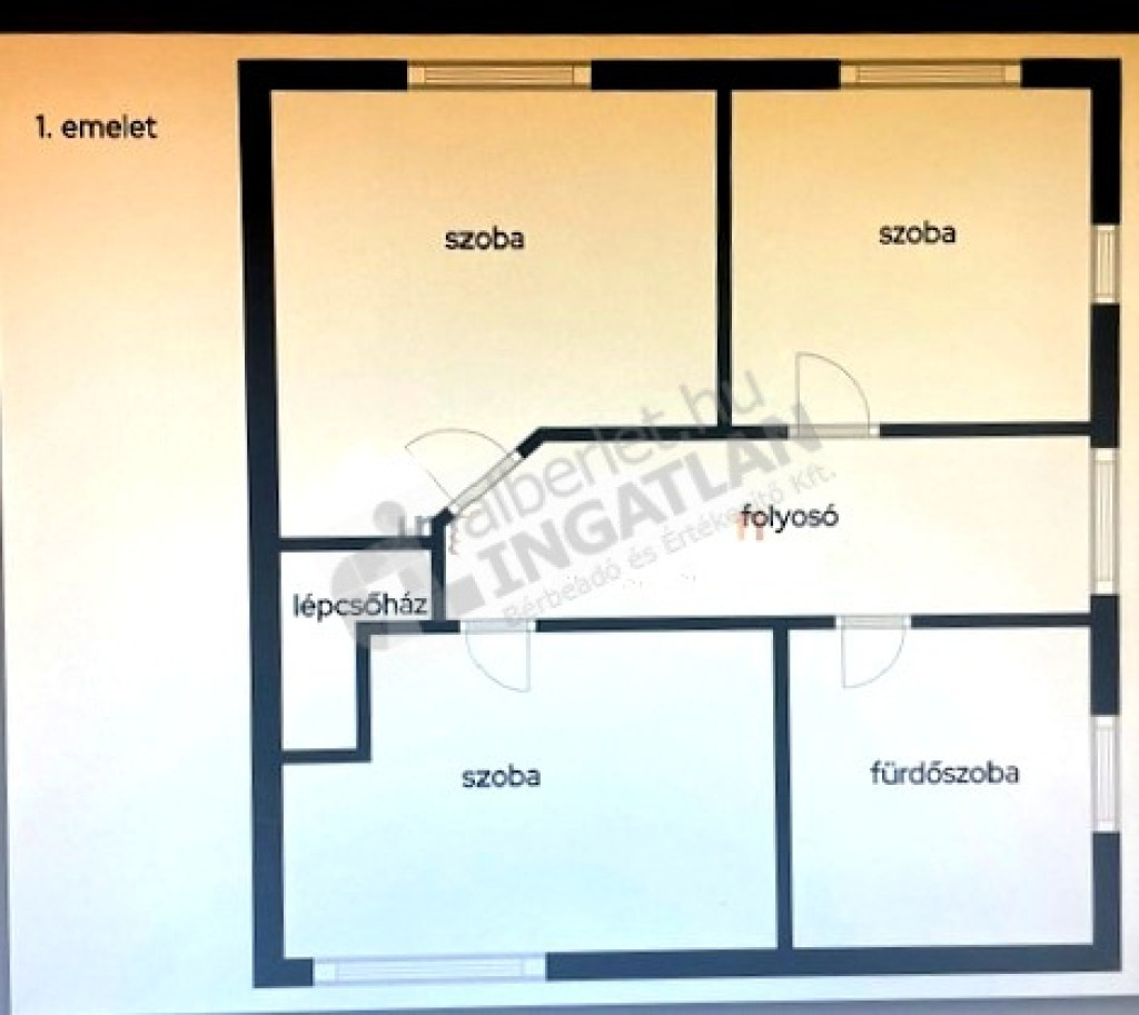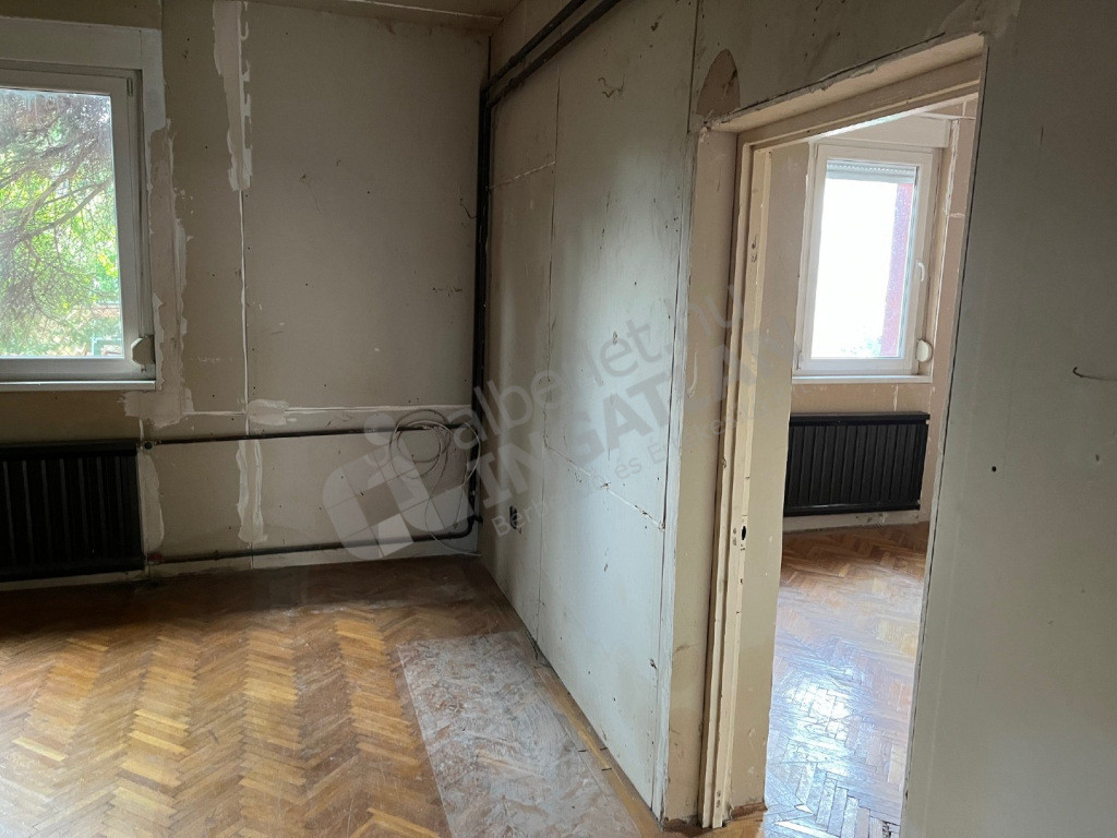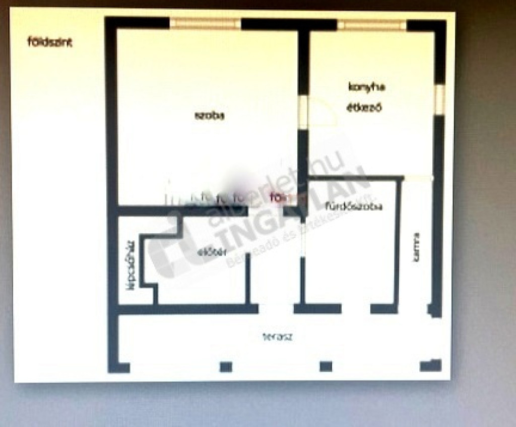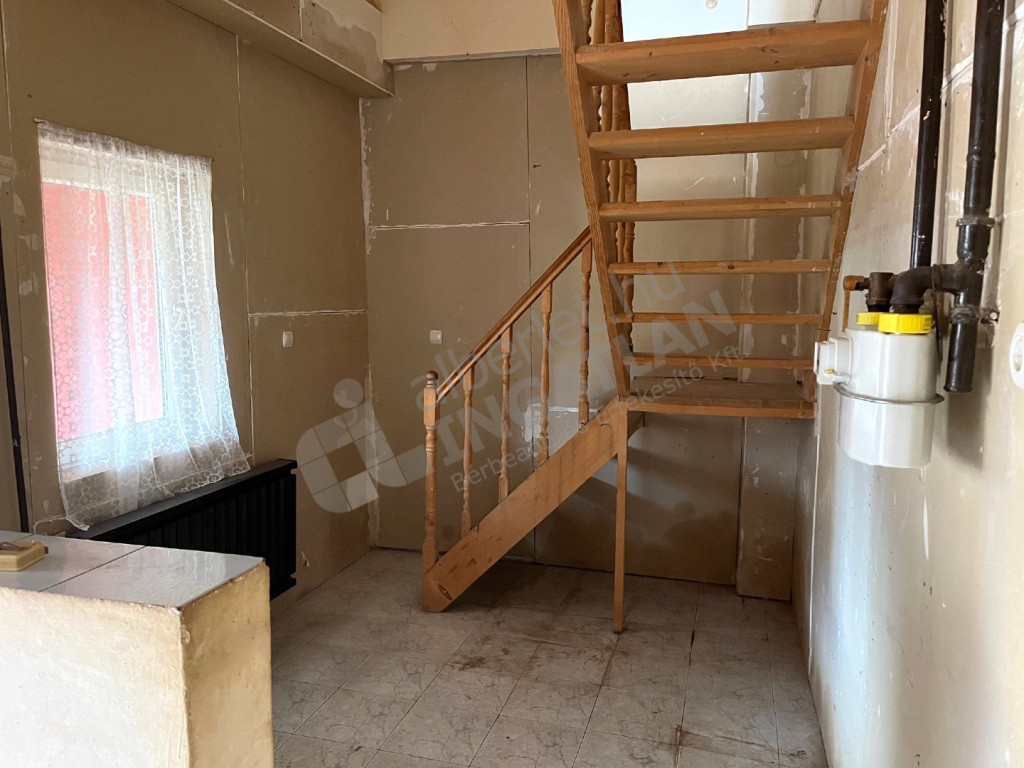 A földszinten jelenleg szoba, konyha, nagy előtér, fürdőszoba és kamra található. Ezen a szinten az összes helyiség teljes felújításra szorul.