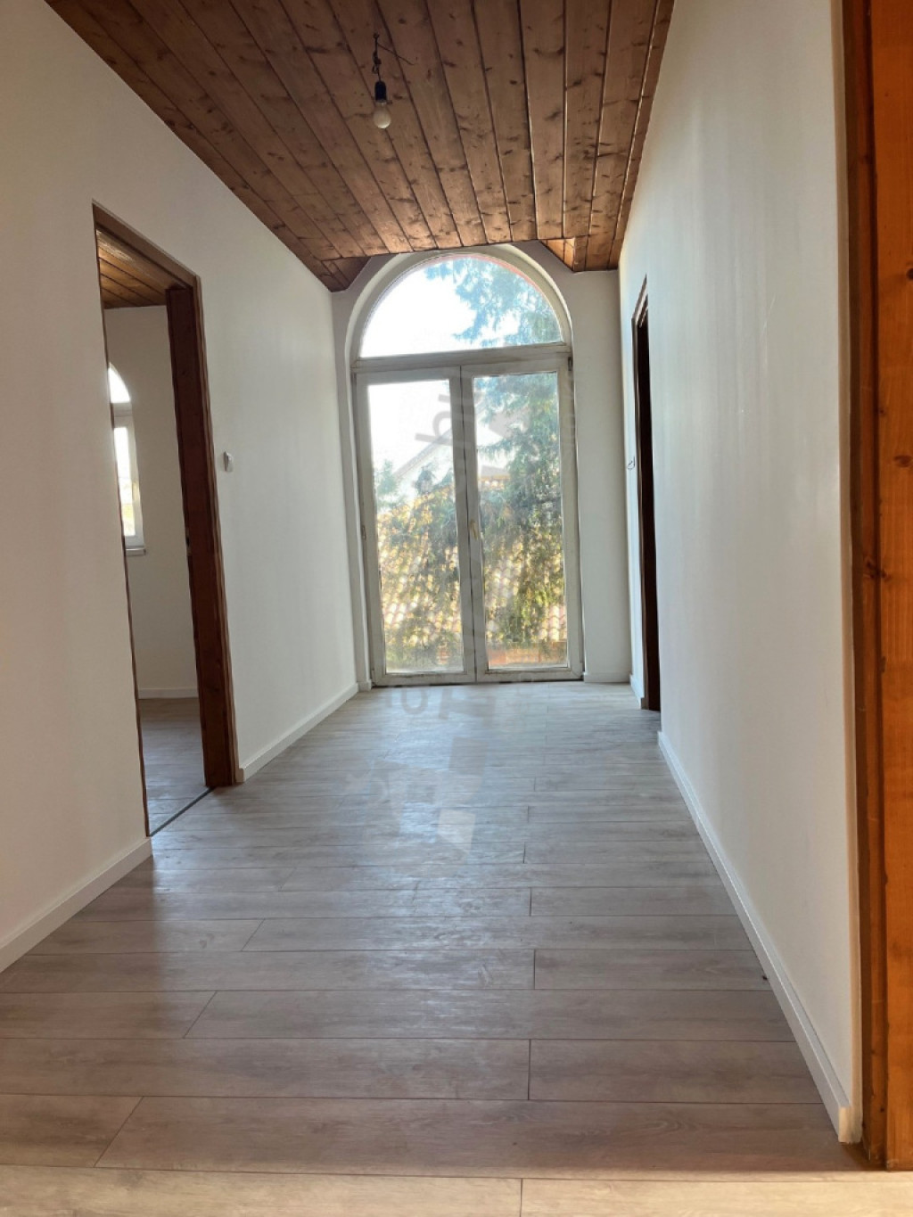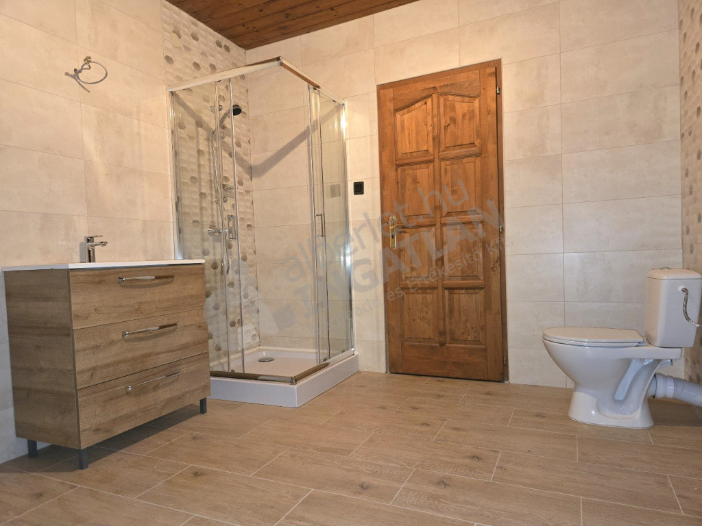 Az emeleten három nagyméretű szoba és egy fürdőszoba került kialakításra, valamint a folyosó egy kis terasszal végződik. Az emeleti rész burkolása és festése elkészült, ezáltal a felső rész lakható egy ideiglenes konyha kialakításával.