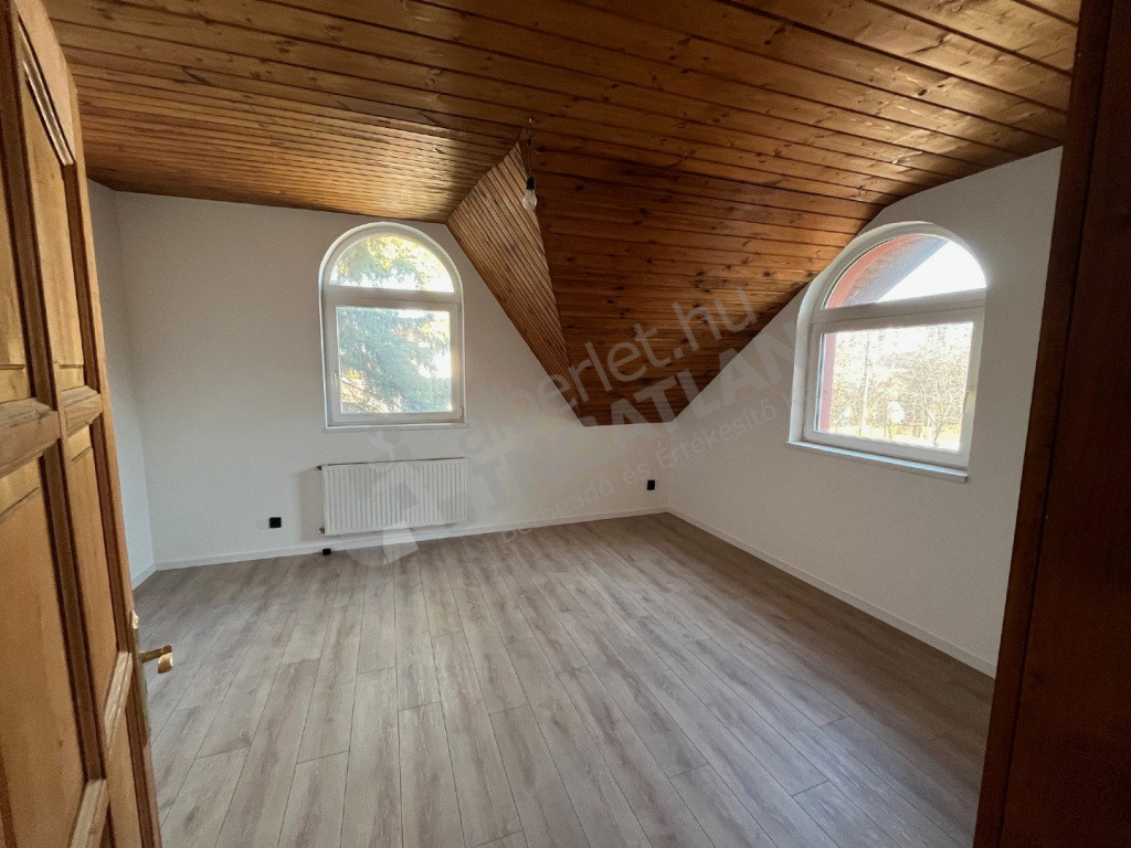 A családi ház csendes, kertvárosi környéken található, önálló, körbejárható, tetőtérbeépítéses.
