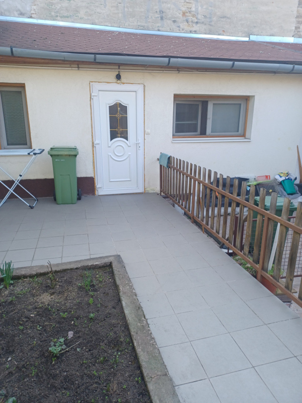 A lakás előtt helyezkedik el a kb. 20 nm terasz kis rózsakerttel, mely kellemes tartózkodási hely nyári estéken.