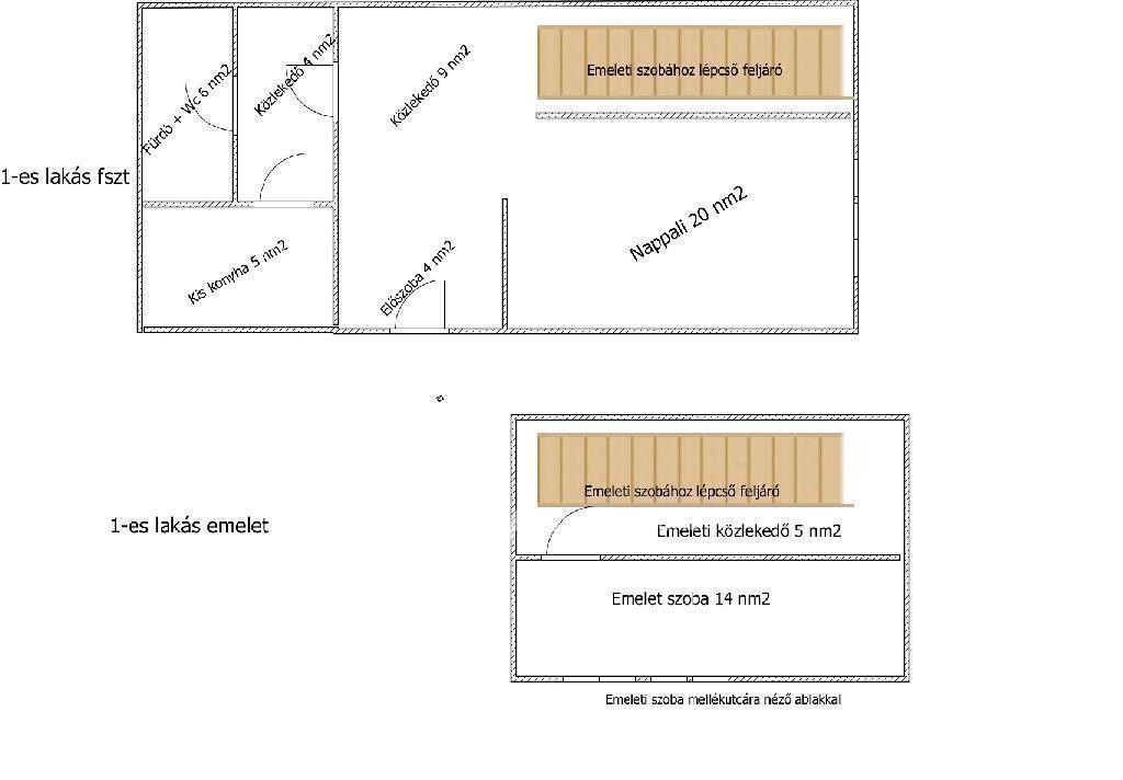 - Emeleti lakások: 64 nm-es két szoba + konyha, fürdőszoba,