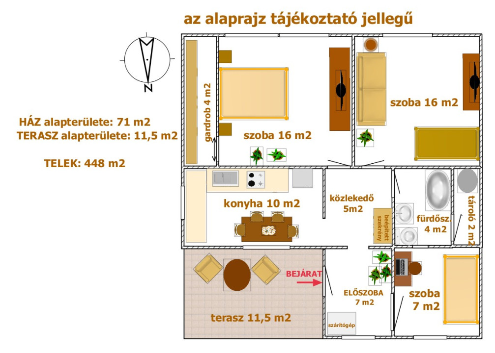 A ház területébe a fedett terasz 50 % került beszámításra.