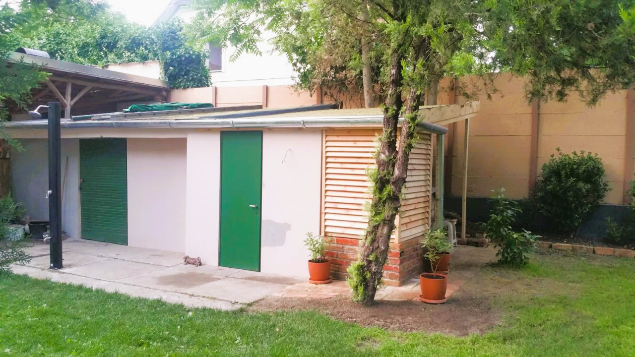 A telek hátsó részében egy jó állapotú tároló ( 17 m2 ) , valamint egy nyári konyha található ( 6,5 m2),