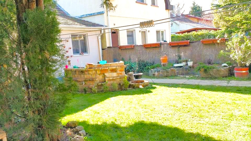 A kert locsolása vezetékes vízzel megoldott, külön kerti vízmérővel, amelynek köszönhetően a nyári öntözés rezsibarát, mivel nem terheli csatornadíj.