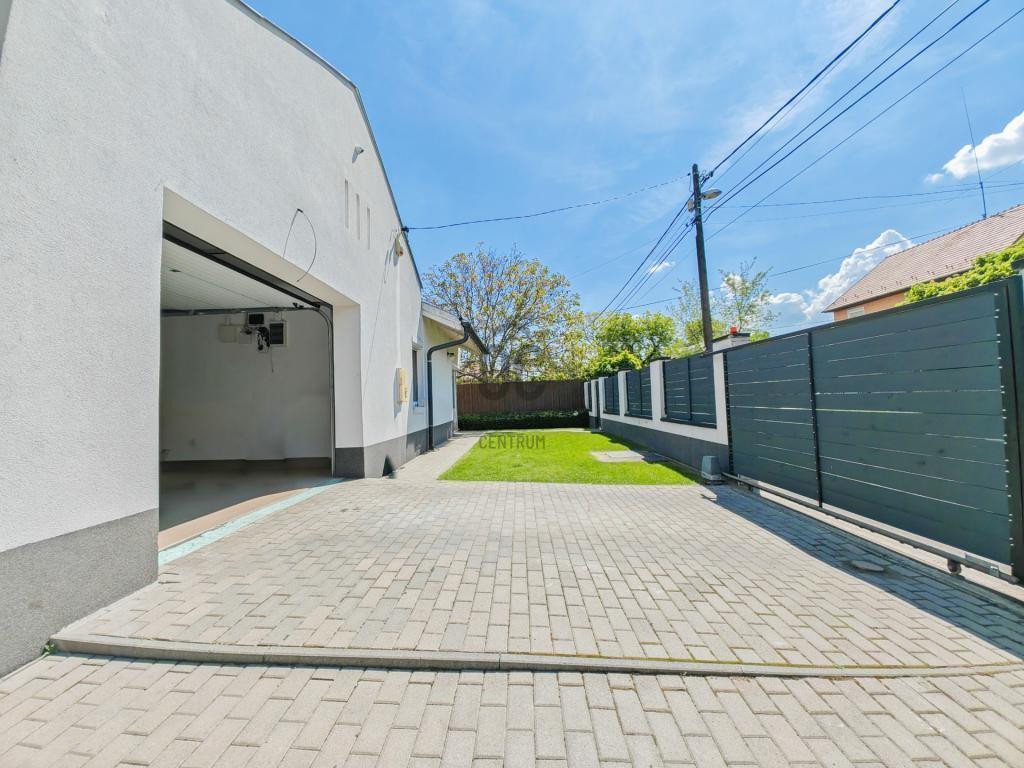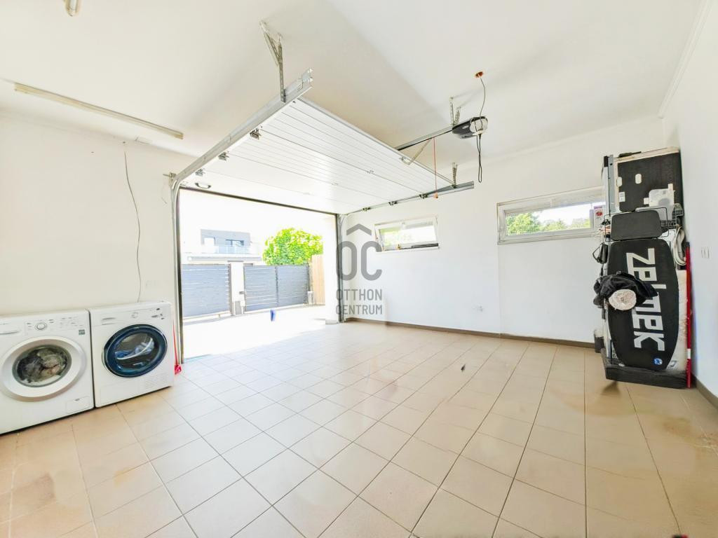 A nagy garázs, ill. dupla elektromos kapu gondoskodik a kényelmes autóbeállásról, mely több autónak is biztosít beállási lehetőséget.