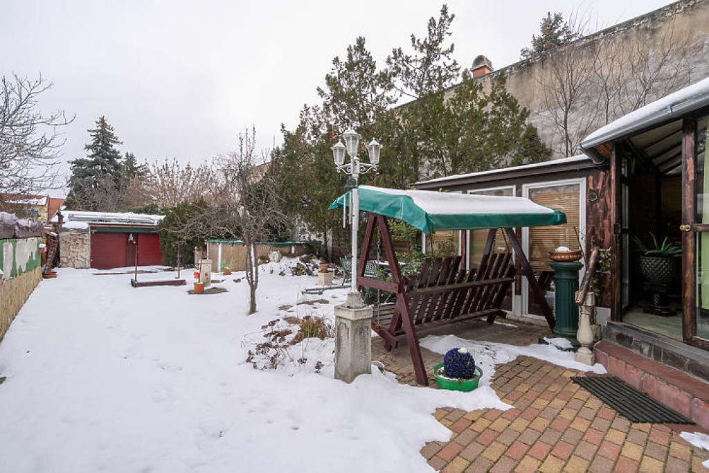 A gondosan kialakított udvar medencével, jacuzzival és szaunával valódi privát wellnessélményt kínál. A ház teljes berendezéssel kerül eladásra.