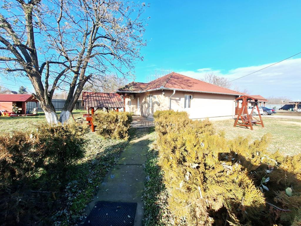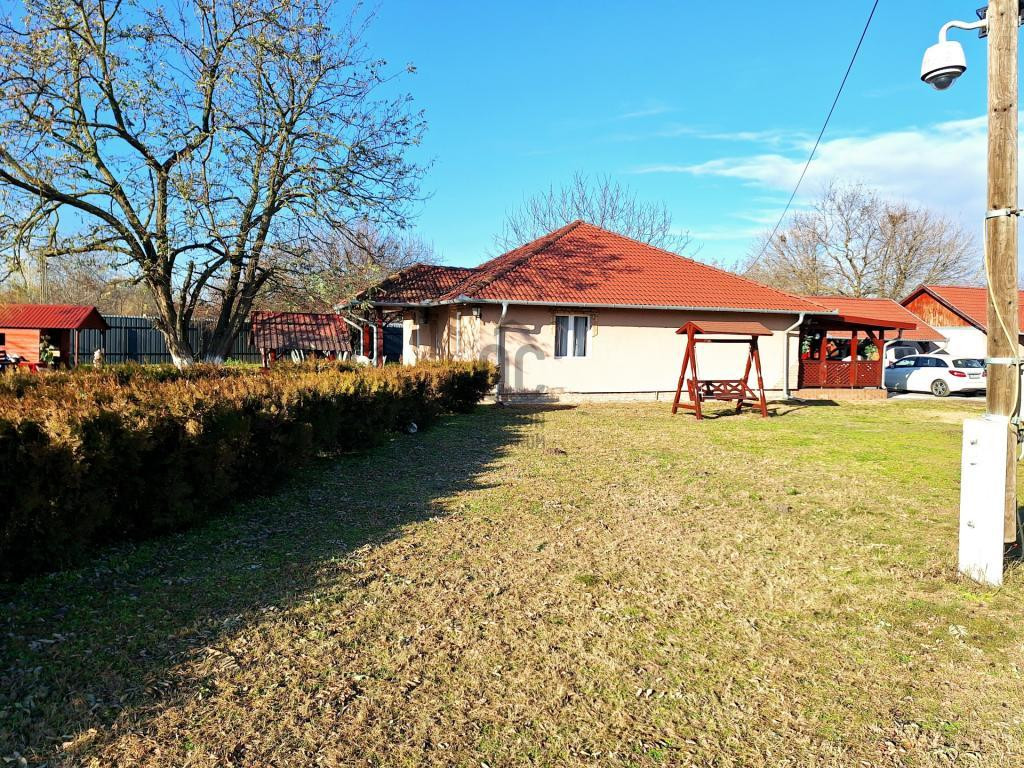 Főépület: 106 m² alapterületű, egy szintes, modern stílusban teljes körűen felújított családi ház.