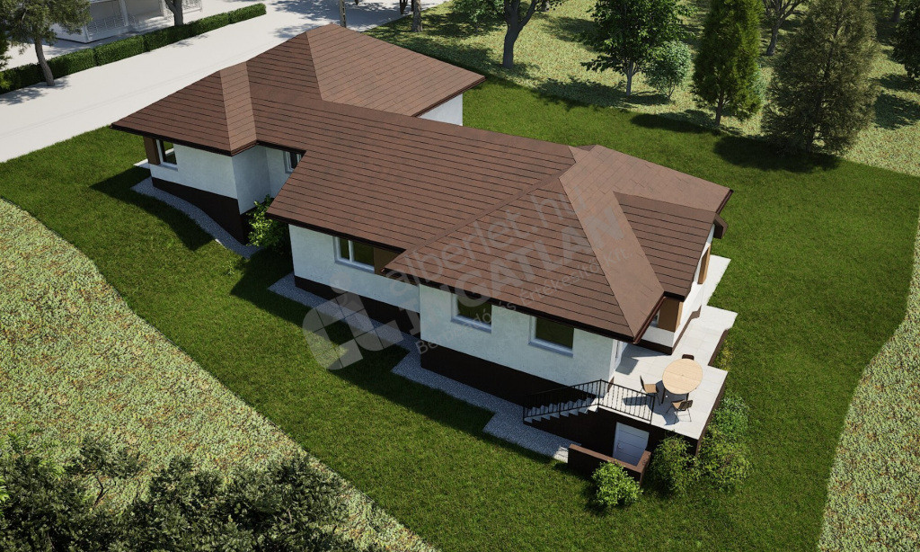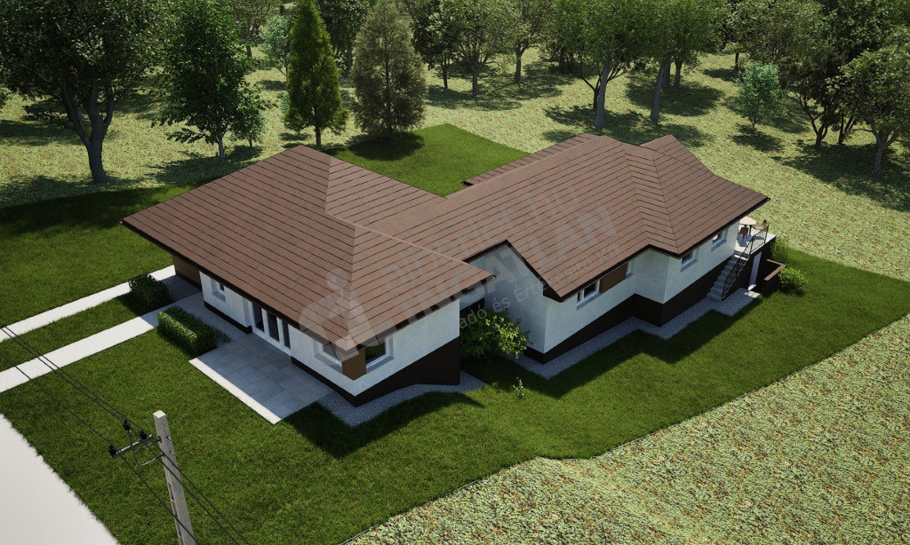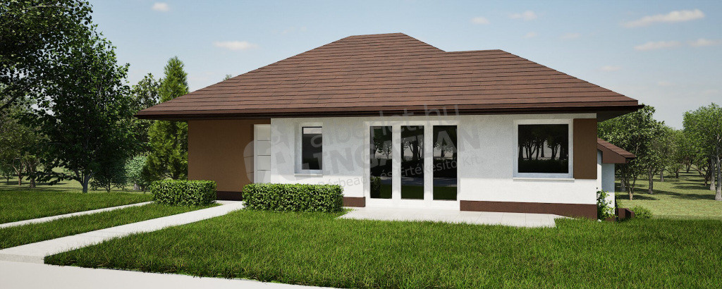 A lakótér 100 m², a burkolatok még egyedi ízlés szerint választhatók.