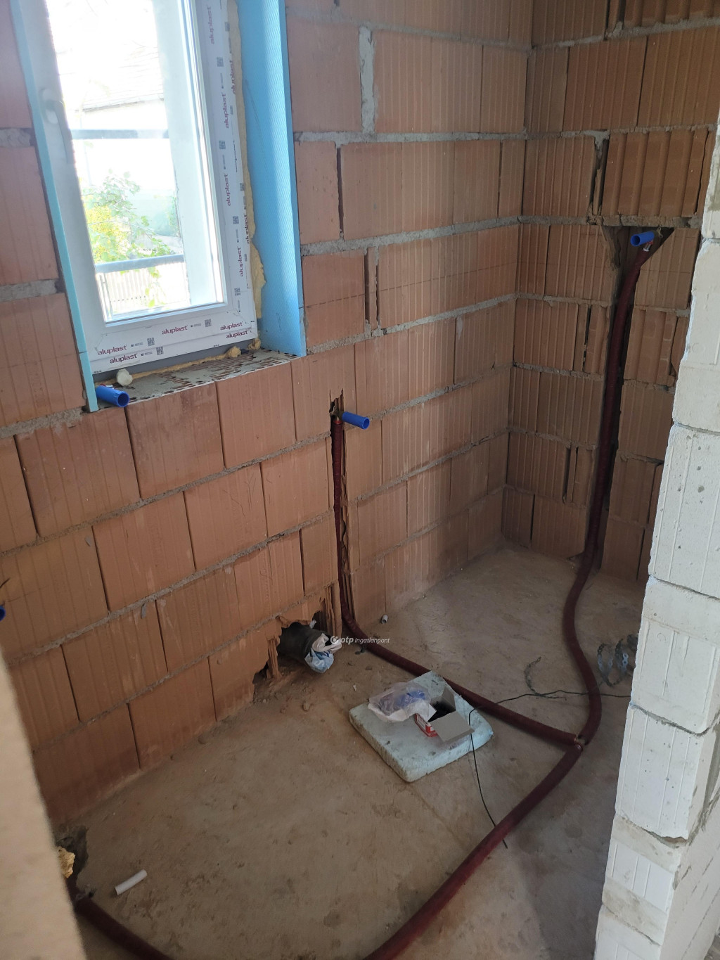 A ház vasbeton sávalapra épül, 30-as Porotherm téglafalakkal, 10-es Ytong válaszfalakkal, E-gerendás vasbeton födémmel.