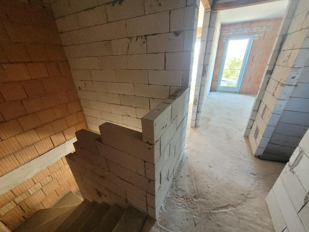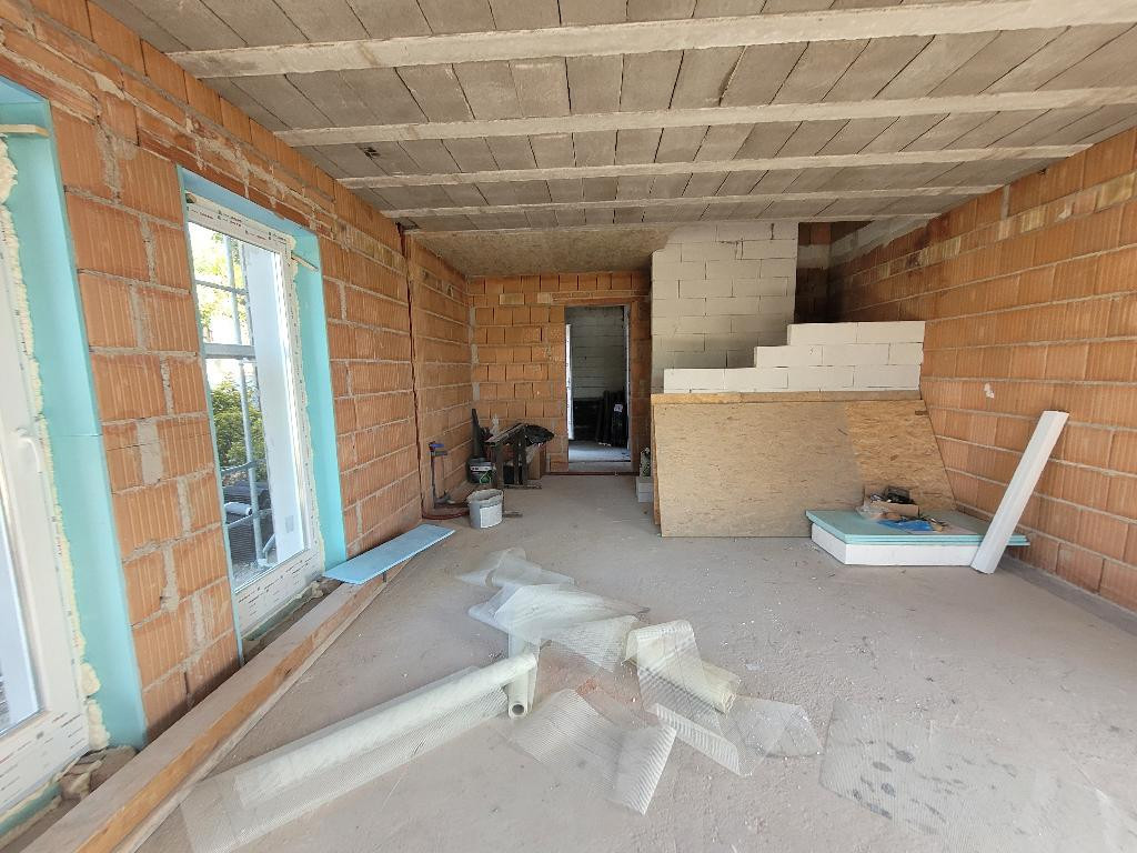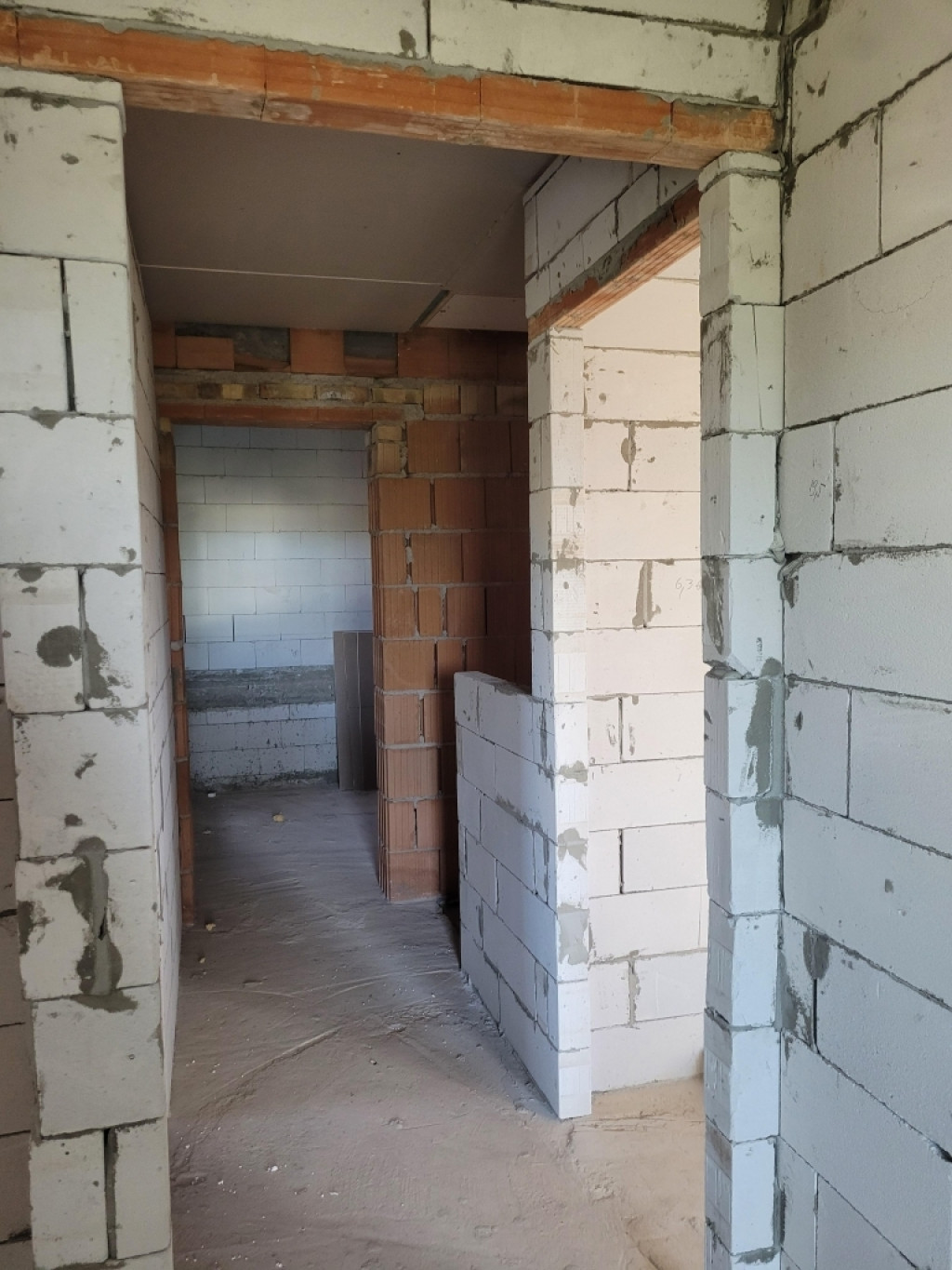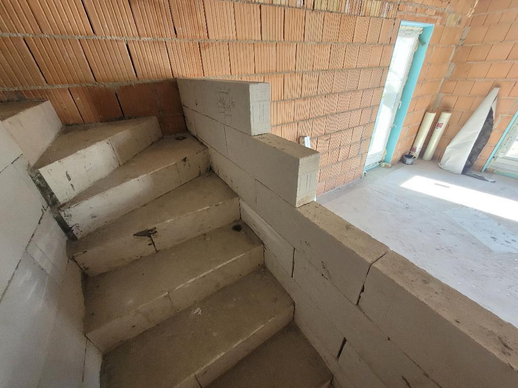 A ház vasbeton sávalapra épül, 30-as Porotherm téglafalakkal, 10-es Ytong válaszfalakkal, E-gerendás vasbeton födémmel.