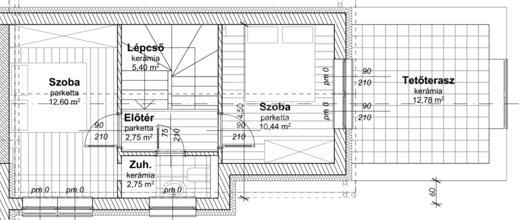 Fűtés: Az épület fűtését hőszivattyús rendszer látja el, minden helyiségben padlófűtés található.