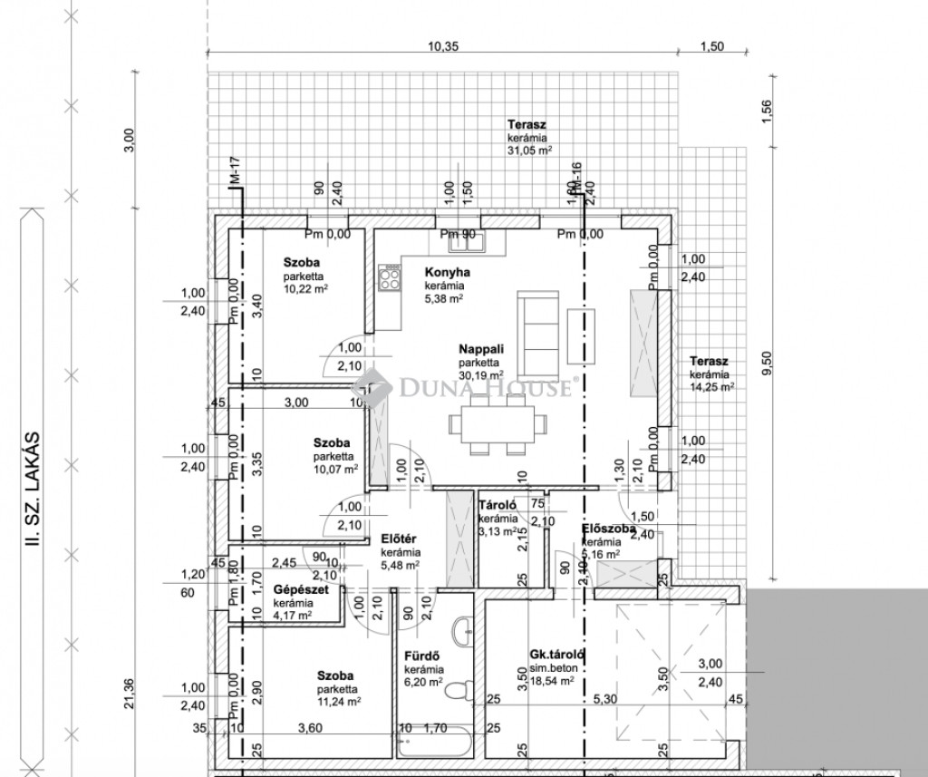 Az ingatlan nettó hasznos lakótér 91,24 m2 + 18,54 m2-es 1 állásos garázs + 45,30 m2 terasz és saját 705 m2 kertkapcsolattal. A helyiségek napfényesek, köszönhetően a jó tájolásnak és a jó méretű egyedi nyílászáróknak.