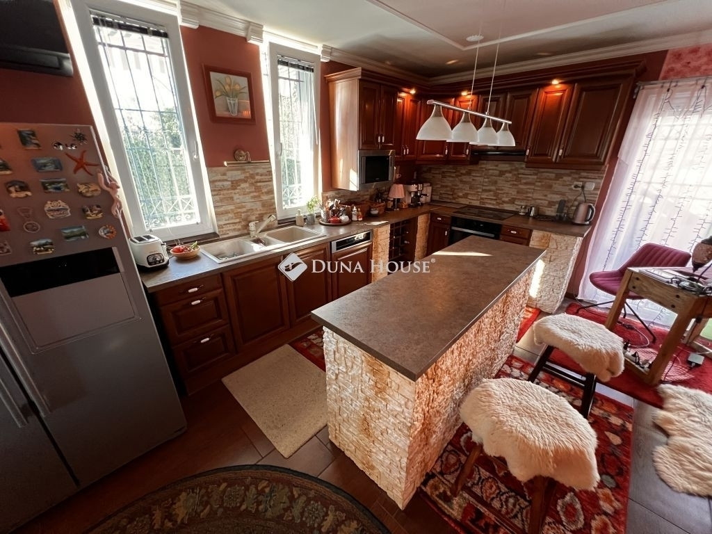 Budapest XXII. kerületében, Budafok csendes, zöldövezeti részén kínálunk megvételre egy 2012-ben épült, prémium minőségben kivitelezett családi házat. Az ingatlan kiváló választás mindazok számára, akik a fővárosi élet előnyeit szeretnék élvezni, miközben nyugodt, harmonikus környezetben kívánnak élni. A ház 135 m² lakótérrel rendelkezik, amely egy 1068 m²-es telken helyezkedik el, és összesen öt szobát, valamint két fürdőszobát foglal magában.Az ingatlan belső tereit átgondolt tervezés és magas színvonalú kivitelezés jellemzi. A tágas és világos helyiségek harmonikus elrendezése kényelmes és elegáns életteret biztosít a mindennapokhoz. A lakótér egyik meghatározó eleme a látványos kovácsoltvas lépcső, amely karaktert és eleganciát kölcsönöz az enteriőrnek. A nyílászárók mindegyike igényesen megmunkált kovácsoltvas rácsokkal ellátott, amelyek egyszerre szolgálnak esztétikai és biztonsági funkciót. A gondos kivitelezésnek és karbantartásnak köszönhetően az ingatlan kiváló állapotban van, így új tulajdonosa számára tervezhető időkeretben válhat elérhetővé.A házhoz tartozó 1068 m²-es telek tágas és jól használható kertet biztosít, amely ideális pihenésre, családi programokra vagy baráti összejövetelekre. A kert egyik különleges eleme a medence, amely a nyári időszakban kellemes kikapcsolódási lehetőséget kínál. A telken egy különálló pince is található, amely praktikus tárolási vagy egyéb funkcionális célokra is alkalmas. A gépjárművek elhelyezéséről garázs, valamint két fedett gépkocsibeálló gondoskodik, így a parkolás minden körülmények között kényelmesen megoldott.Az ingatlan elhelyezkedése szintén kedvező. Budafok kertvárosi környezete nyugodt és zöld, ugyanakkor kiváló közlekedési kapcsolatokkal rendelkezik. Az M0 autóút autóval körülbelül két perc alatt elérhető, míg a 13, 13A, 88, 113, 113A és 213 jelű BKK-járatok megállói mintegy öt perc sétatávolságra találhatók. A közelben étterem és játszótér is rendelkezésre áll, így a mindennapi élethez szükséges infrastruktúra könnyen elérhető. Ennek köszönhetően a lakók egyszerre élvezhetik a kertvárosi nyugalmat és a főváros nyújtotta lehetőségeket.Ez az ingatlan ideális választás lehet egyedülállók, párok és családok számára egyaránt, különösen azoknak, akik értékelik a minőségi kivitelezést, a tágas tereket és a természet közelségét, miközben fontos számukra a város gyors elérhetősége. A prémium kivitelezés, a tágas telek és a kedvező elhelyezkedés együtt olyan otthont eredményez, amely hosszú távon is értékálló választás lehet.Amennyiben az ingatlan felkeltette érdeklődését, további információért vagy megtekintési időpont egyeztetéséhez keressen bizalommal.