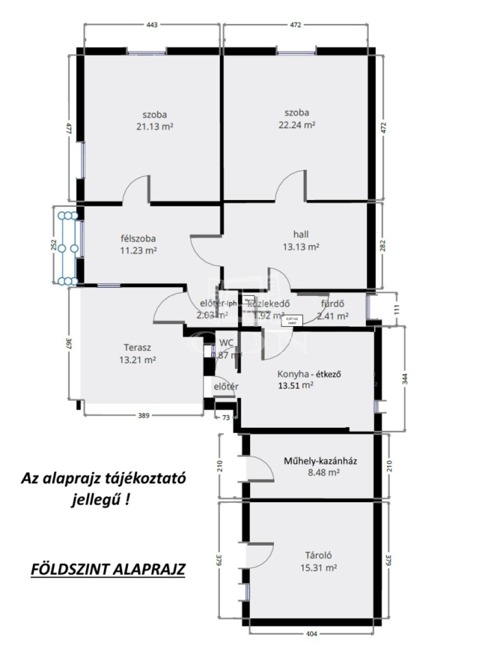 Méretek és elrendezés az alaprajzon látható, tájolása: K-D-Ny.