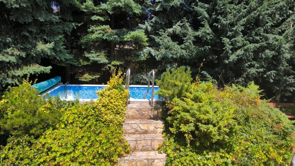 In a quiet residential part of Budatétény, a truly exceptional property is for sale on a 1655 m² double plot with two separate houses. The landscaped garden with a private pond, wooden bridge and swimming pool is a rare highlight. The main house offers 240 m², the guest house 34 m², both with multiple usage possibilities.