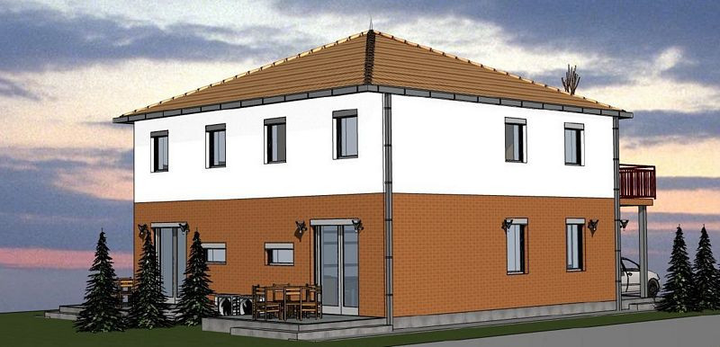 Szerkezeti leírás: Beton sávalap. Bakony 30-as tégla főfalak + 15cm dyvit szigetelés. 10-es ytong válaszfalak. A külső nyílászárók műanyag szerkezetűek fehér színben, 3 rétegű, 5 légkamrás üvegezéssel ellátva. A belső nyílászárók dekorfóliás ajtók. Beton födém, zárófödémen 20cm üveggyapot szigeteléssel. Cserép fedésű tető.