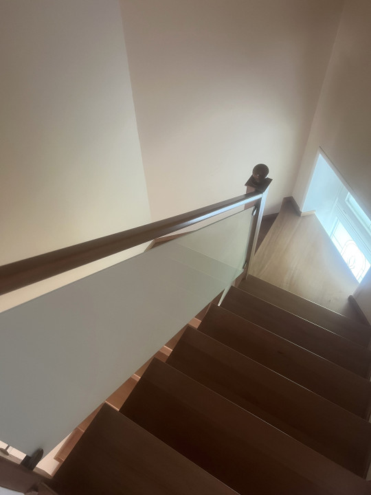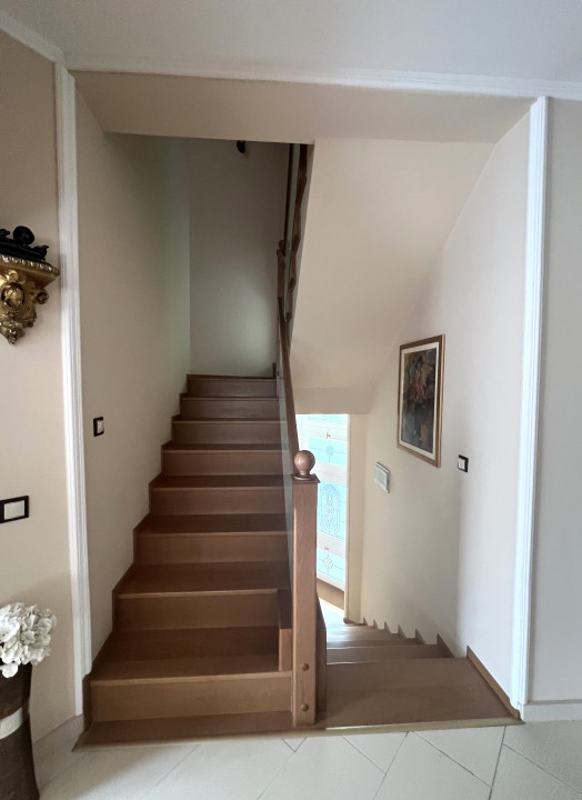 • staircase leading to the lower residential level, accessible from the ground-floor hallway,