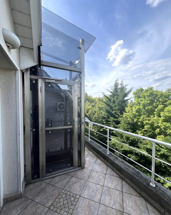 Önálló legfelső - jelenleg elegáns iroda - tetőtéri szinthez PANORÁMA LIFT kiépített.
