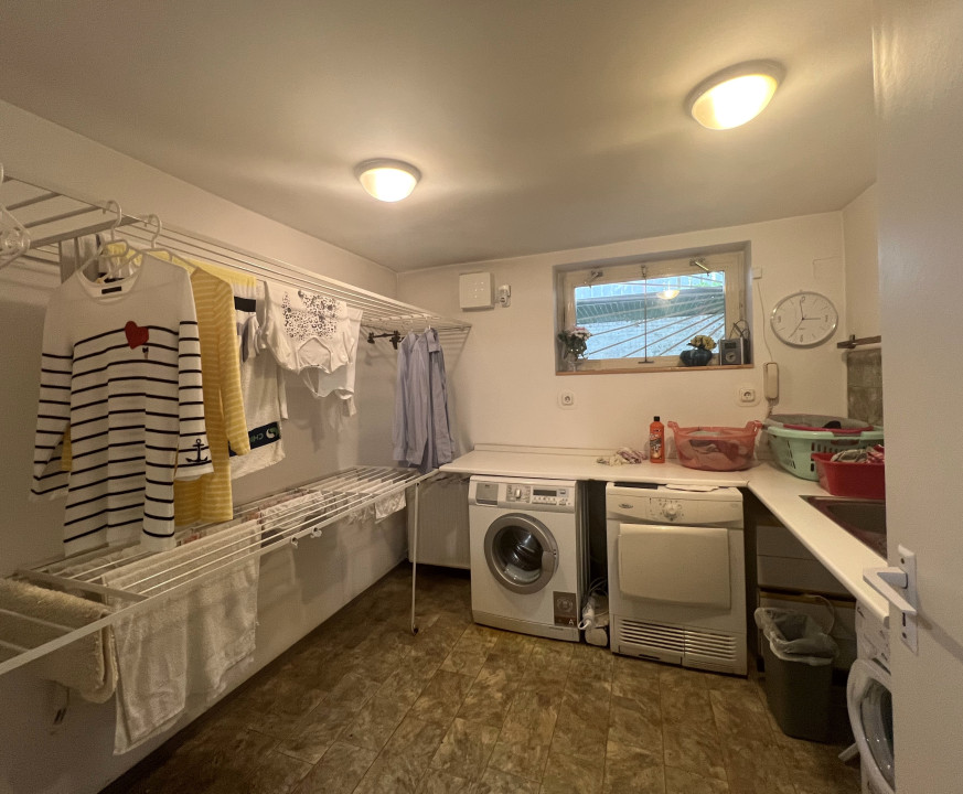 - ablakos nagy mosóhelyiség, szauna, tároló, vizes blokk, gépészeti helyiség,
