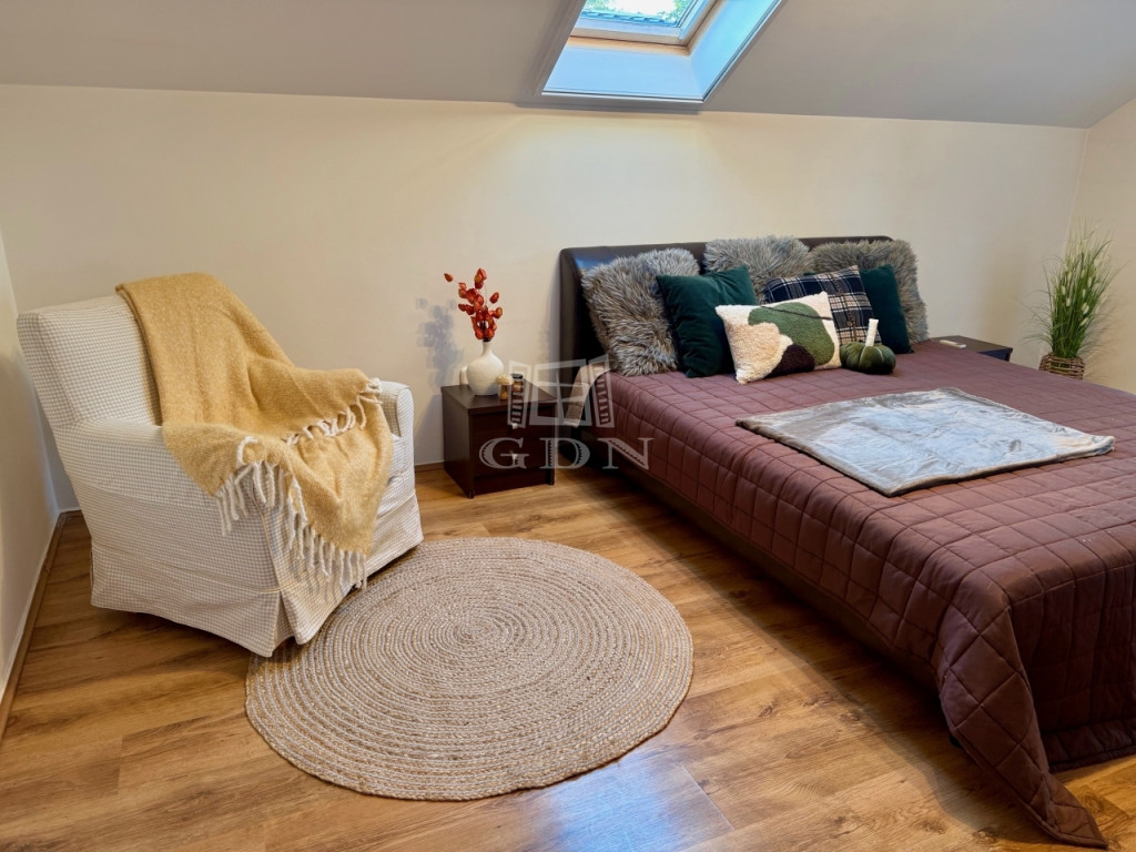 A két szinten összesen 4 tágas, világos szoba található, amelyek nagy ablakfelületeikkel egész nap természetes fényt engednek be.
