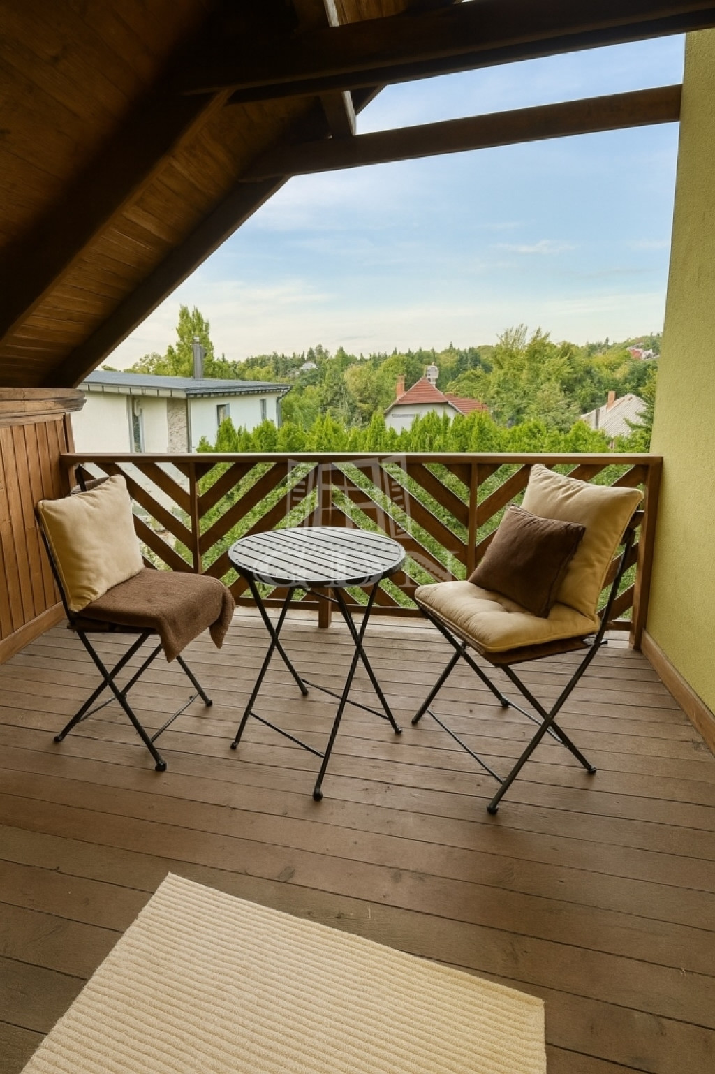 – Az emeleten három hálószoba található, amelyek közül kettő panorámás kilátással bír a zöldövezeti környezetre.